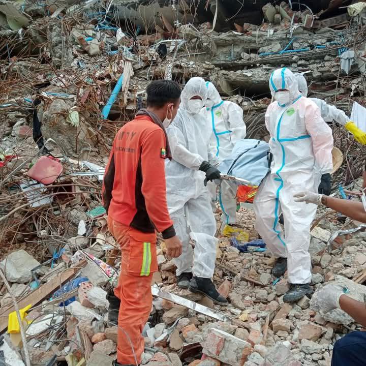 မြန်မာနိုင်ငံမီးသတ်တပ်ဖွဲ့မှ မန္တလေးငလျင်ကြီး ကြောင့် ပြိုကျ ပျက်စီးခဲ့တဲ့ Sky Villa အဆောက်အဦ (B ) အဆောင်ကို ယန္တရားတွေနဲ့အတူ အဆောက်အဦအတွင်း ဆက်လက်ဖယ်ရှားရှင်းလင်းခြင်းနှင့် ရုပ်အလောင်းထုတ်ယူနိုင်ရေးလုပ်ငန်းတွေ ဆောင်ရွက်လျက်ရှိရာ ၊ B အဆောင် အခန်းအမှတ် H -7 မှ မြန်မာငွေ ၉၅,၁၈၅,၀၀၀ ကျပ်၊ ရွှေ(၁၀)ကျပ်သား (၉)တုံး၊ (၅)ကျပ်သား (၄)တုံး၊ (၆)ကျပ်သား (၁)တုံး၊ (၃)ကျပ်သား (၃)တုံး၊ (၂)ကျပ်သား (၃)တုံး၊ (၁)ကျပ်သား (၅)တုံး၊ (၅)မူးသား (၂)တုံး၊ ရွှေဆွဲကြိုး (၅)ကုံး၊ ပလက်တီနမ်ဆွဲကြိုး (၂)ကုံး၊ ဟန်းချိန်း(၁)ခု၊ နားကပ်(၁)ရံ၊ ရွှေဆွဲသီး (၄)ခု၊ ရွှေဆံညှပ်(၁)ခု၊ ရွှေဟန်းချိန်း(၃)ကွင်း၊ ရွှေလက်ကောက်(၁)ကွင်း၊ ရွှေလက်စွပ်(၄)ကွင်း၊ ပယင်းလက်စွပ်(၁)ကွင်း၊ ရွှေနားဆွဲ(၁)ရံ၊ ရွှေဖြူမှုန့်(၂)ထုပ်၊ Car owner book (၁)ခု၊ အိမ်ထောင်စုဇယား(၁)ခု၊ အရောင်းအဝယ်စာချုပ်(၃)ခုတို့ ရှာဖွေတွေ့ရှိခဲ့ပြီးပစ္စည်းလက်ခံလွှဲပြောင်းရေးအဖွဲ့ကနေတစ်ဆင့် ပိုင်ရှင်ဖြစ်သူထံသို့ လွှဲပြောင်းပေးအပ်ခဲ့တယ်လို့ သိရပါတယ်။
