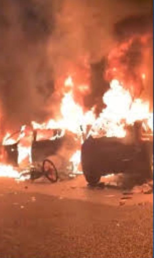အကြမ်းဖက်အောင်ပွဲခံချီတက်ပွဲအတွင်း ချီတက်ထောက်ခံသူတွေက ကားအစီးရေ ၂၀၀ ကျော်ကိုလည်း မီးရှို့ခဲ့ကြတယ်လို့ ပြည်ထဲရေးဝန်ကြီးဌာနက ဇွန်လ ၁ ရက်မှာ သတင်းထုတ်ပြန်ခဲ့ပါတယ်။ ဒါ့ပြင်လုံခြုံရေးတပ်ဖွဲ့ဝင် ၂၂ ဦးနဲ့ မီးသတ်သမား ခုနစ်ဦး ထိခိုက်ဒဏ်ရာရရှိခဲ့တယ်လို့လည်း သိရပါတယ်။