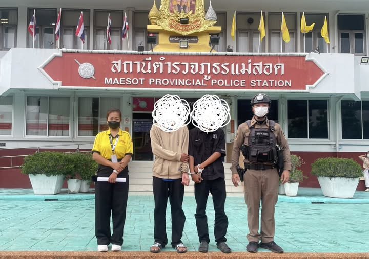 ထိုင်းနိုင်ငံ၊ မဲဆောက်မြို့တွင် ရဲစခန်းရှေ့က ကုန်စုံဆိုင်တစ်ဆိုင်ကိုဝင်ခိုးသည့် အသက်မပြည့်သေးသော မြန်မာနှစ်ဦးအား ဖမ်းဆီးထားကြောင်း မဲဆောက်ရဲစခန်းက ဇွန်လ ၆ ရက်တွင် ထုတ်ပြန်ထားသည်။