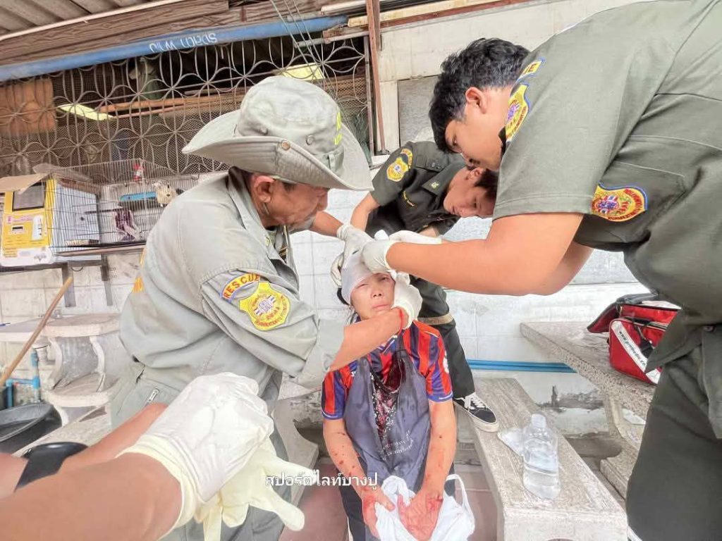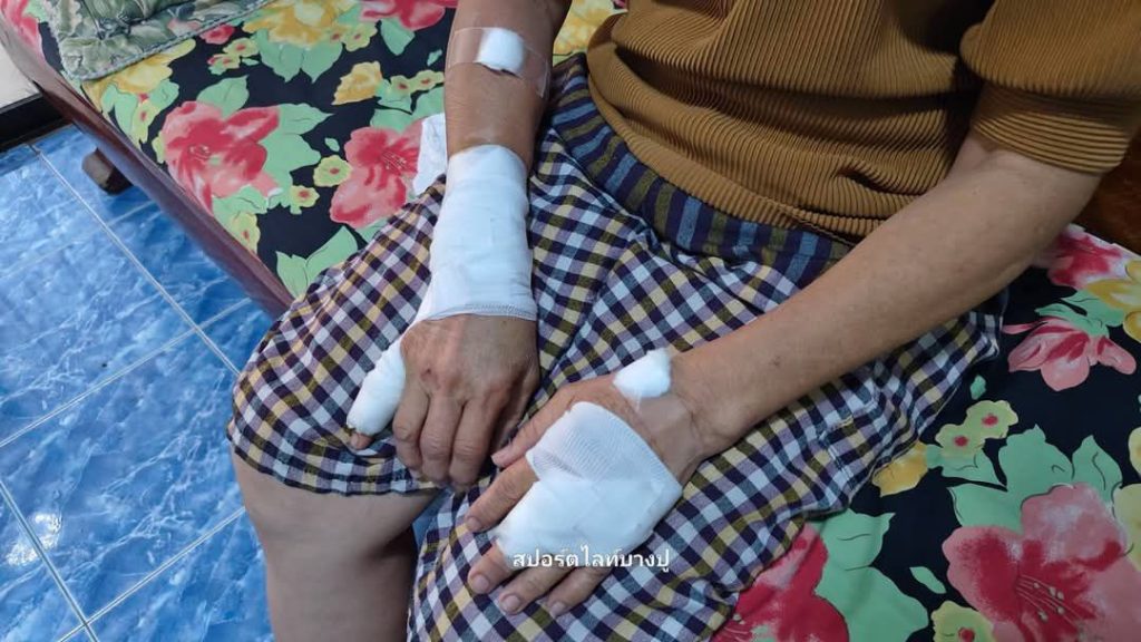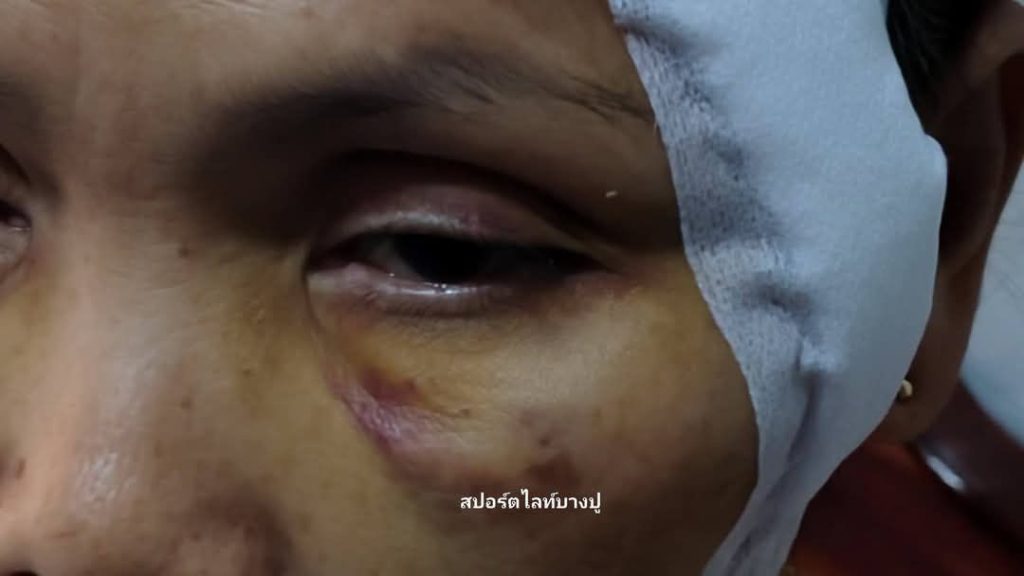ဓားထိုးခံရ၍ ထိုင်းအမျိုးသမီး၏ နားထင်၊ မျက်နှာ၊ လက်နှစ်ဖက်တို့တွင် ဒဏ်ရာများရရှိခဲ့ကြောင်း သိရသည်။
