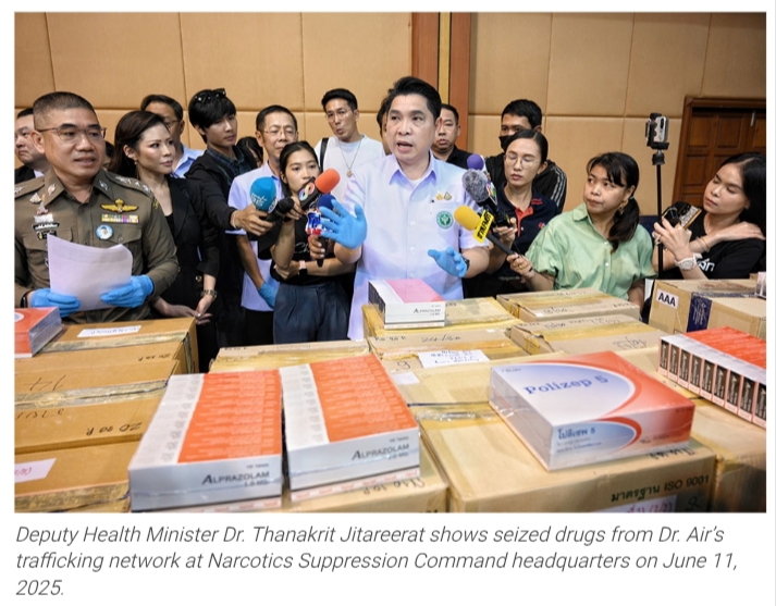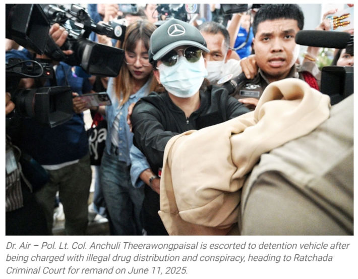 Dr. Air – ဒုရဲမှူးကြီး အန်ချူလီ သီရာဝေါင်သည် လက်ဝယ်ပိုင်ဆိုင်သည် တရားမဝင် မူးယစ်ဆေးဝါး ဖြန့်ဖြူးမှုနှင့် ပူးပေါင်းကြံစည်မှုဖြင့် တရားစွဲခံရပြီးနောက် ၂၀၂၅ ခုနှစ်၊ ဇွန်လ ၁၁ ရက်နေ့တွင် ရာချာဒါး ရာဇဝတ်တရားရုံးသို့ ရမန်ယူရန် ထိန်းသိမ်းရေးယာဉ်သို့ လိုက်ပါသွားသည်ကို တွေ့ရှိရပြီး ဤအမှုသည် ဆေးညွှန်းဖြင့်သာ ဝယ်ယူရသော ဆေးဝါးများ အလွဲသုံးစားပြုမှုနှင့် တရားမဝင် မူးယစ်ဆေးဝါး ရောင်းဝယ်မှု လုပ်ငန်းများအတွက် ဆေးဘက်ဆိုင်ရာ အာဏာကို အလွဲသုံးစားပြုမှုတို့နှင့် ပတ်သက်သော ပြည်သူတို့၏ စိုးရိမ်မှုများကို မီးမောင်းထိုးပြနေသည်။