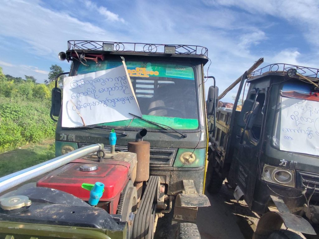 KIA နဲ့ PDF တွေ ထိန်းချုပ်ထားတဲ့နယ်မြေမှာ စက်သုံးဆီဟာ ရွှေတူးတာ၊ သစ်ခိုးထုတ်တာ စတဲ့သယံဇာတမှောင်ခိုထုတ်လုပ်ဖို့ အရေးပါတဲ့ မှောင်ခိုသွင်းကုန်ဖြစ်တာကြောင့် တစ်ဂါလန်ကို ကျပ် ၇၀၀၀၀ ဝန်းကျင်နဲ့ အထက်ရှိနေတယ်လို့လည်း သိရပြီး အပြန်အလှန်လောဘနဲ့ မှောင်ခိုသယ်တဲ့ ပြည်သူတွေနဲ့ ဆက်ကြေးအဆမတန်ကောက်တဲ့ NUG ရဲ့ ပသုံးလုံးတွေအကြားမှာ တင်းမာနေမှုကို NUG ကလည်း မသိကျိုးကျွံပြုနေသလို ဒေသခံတွေနဲ့ ကုန်တင်ယာဥ်တွေကလည်း “ကျားကြောက်လို့ ရှင်ကြီးကိုး၊ ရှင်ကြီးကျားထက်ဆိုး၊ ကိုယ်ချင်းစာပါ(ရှင်) ကြီးရယ်၊ ကျုပ်တို့တွေက ပြည်သူတွေပါ”၊ “ပြည်သူတွေက ကုမ္ပဏီထောင်ဖို့မဟုတ်ဘူး။ ဝမ်းရေးအတွက် ရှာဖွေနေတာ”၊ “NUG အခွန်ကောက်ခွင့် တရားဝင်ပေးထားတာလား” စတဲ့ ဆိုင်းဘုတ်တွေနဲ့ ဆက်လက် ဆန္ဒပြနေကြပါတယ်။