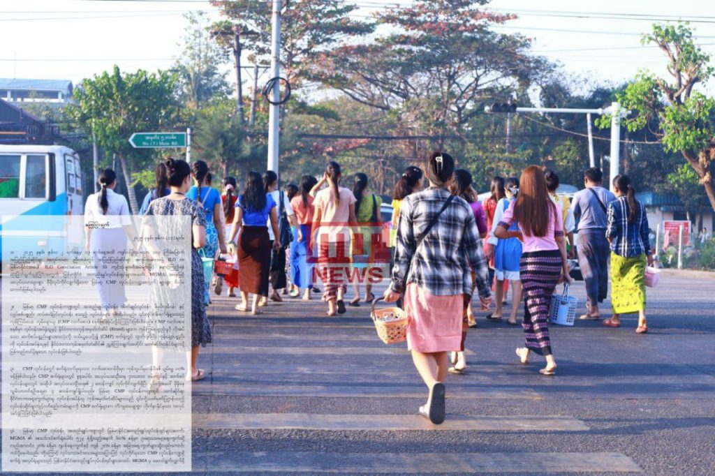 မြန်မာနိုင်ငံအပေါ် ILO က စောင့်ကြည့်ရန် ဆုံးဖြတ်ချက်ချခဲ့ခြင်းကြောင့် အလုပ်သမားများစွာ မှီခိုလုပ်ကိုင်နေသည့် CMP လုပ်ငန်းကဏ္ဍအတွက် များစွာစိတ်မကောင်းဖြစ်ရကြောင်း မြန်မာနိုင်ငံအထည်ချုပ်လုပ်ငန်းရှင်များအသင်း (MGMA) မှ ဇွန်လ ၁၃ ရက်(ယမန်နေ့)တွင် ကြေညာချက် ထုတ်ပြန်ထားသည်။