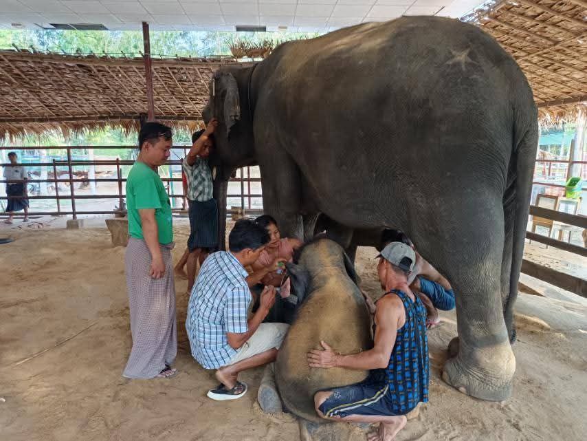 မိခင်ဆင်မကြီးက အိပ်ပျော်နေရာကနေ ရုတ်တရက်လန့်နိုးပြီး ကန်မိတာကြောင့် ရန်ကုန်- မန္တလေးအမြန်လမ်းပေါ်မှာရှိတဲ့ ဝင်္ကဘော်ဆင်စခန်းက ဆင်အမွှာအထီးလေး ကျော်ပုလဲဟာ ကျောရိုးမကြီးနဲ့ မြီးခုံရိုးပြင်းထန်စွာထိခိုက်ပြီး လမ်းမလျှောက်နိုင်ဖြစ်နေတာ ရက်သတ္တပတ် လေးပတ်နီးပါး တစ်လဝန်းကျင်ခန့်ကြာမြင့်နေပြီ ဖြစ်တယ်လို့ သိရကာ ဒီနေ့မှာတော့ ဆင်ထီးလေး ကျော်ပုလဲရဲ့ နောက်ခြေထောက်ကို ဘီးတပ်လှည်းပေါ်တင်ပြီး လေ့ကျင့်ပေးတဲ့ ပုံတချို့ ဝင်္ကဘော်ဆင်စခန်းက လူမှုကွန်ရက်ပေါ် မျှဝေထားပါတယ်။