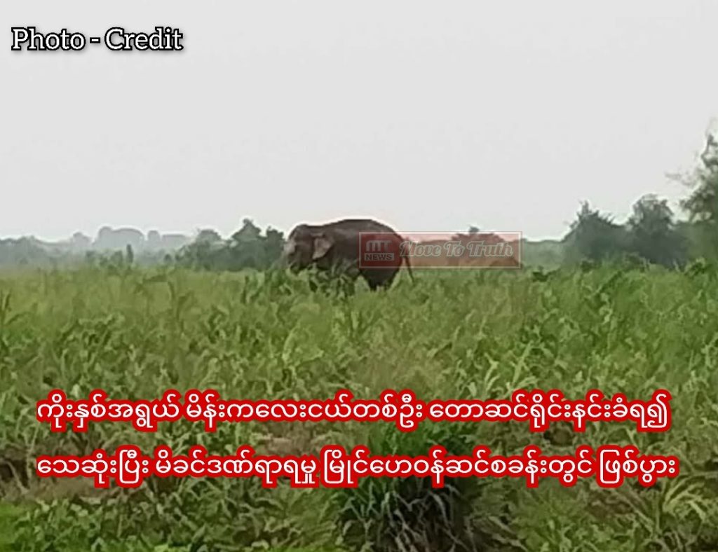 တိုက်ကြီးမြို့နယ်၊ ဖလုံကျေးရွာနှင့် ၁၂ မိုင်ဝေးသော ဥက္ကံကြိုးဝိုင်းရှိ မြိုင်ဟေဝန်ဆင်စခန်းတွင် ယမန်နေ့ ဇွန်လ ၁၆ ရက် နံနက်အစောပိုင်းက တောဆင်ရိုင်းတစ်ကောင် ဝင်ရောက်လာကာ အသက်ကိုးနှစ်အရွယ်မိန်းကလေးငယ်ကို နင်းသတ်ခဲ့သည်ဟု ဒေသခံတစ်ဦးက ပြောသည်။