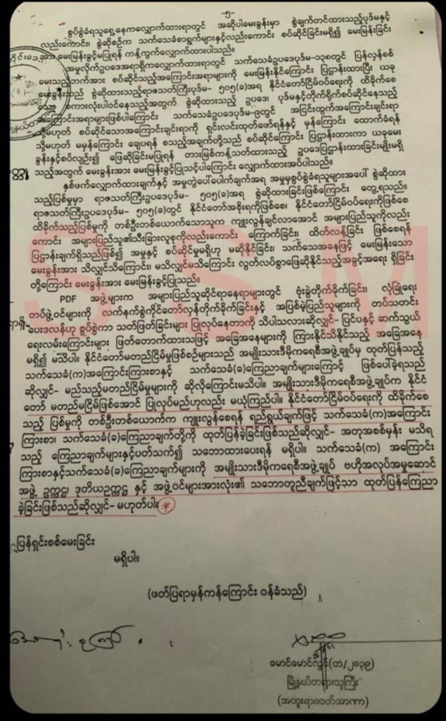 ဒေါ်အောင်ဆန်းစုကြည်၏ ရုံးချိန်းရုပ်သံများ ယမန်နေ့က ထွက်ပေါ်လာပြီးနောက် ယနေ့ ဒေါ်အောင်ဆန်းစုကြည်၏ အသက် ၈၀ ပြည့် မွေးနေ့ရက်တွင် တရားခွင်မှတ်တမ်းပါ ထွက်ပေါ်လာခဲ့ပြီး အဆိုပါ တရားခွင်မှတ်တမ်းများတွင် ဒေါ်အောင်ဆန်းစုကြည်က လက်ရှိအချိန် ရာဇဝတ်မှုအဖွဲ့အစည်းအသွင်ပြောင်းလာသည့် CRPH၊ NUG နှင့် PDF ဆိုသည်ကို မသိရှိကြောင်း တရားခွင်တွင် ထွက်ဆိုခဲ့သည်ကို တွေ့ရသည်။