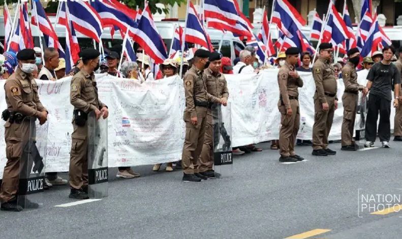 ထိုင်းနိုင်ငံ ပြုပြင်ပြောင်းလဲရေး လိုလားတဲ့ ကျောင်းသားများနဲ့ ပြည်သူများကွန်ရက်(NSPRT) မှ ဆန္ဒပြသမားတွေဟာ ဘန်ကောက်မြို့ရှိ အစိုးရရုံးအပြင်ဘက်မှာ ဇွန်လ ၂၄ ရက်က စုဝေးခဲ့ကြပြီး ဆန္ဒပြမှုတစ်ရပ် ပြုလုပ်ခဲ့ကြပါတယ်။ သူတို့က လူထုကြား ပေါက်ကြားလာခဲ့တဲ့ ဝန်ကြီးချုပ် ပေတုံတန် ရှင်နာဝပ်ထရာရဲ့ ကမ္ဘောဒီးယားဝန်ကြီးချုပ်ဟောင်းနဲ့ အထက်လွှတ်တော်ဥက္ကဋ္ဌ ဟွန်ဆန်နဲ့ ဖုန်းဆက်သွယ်မှုမှာ ပြောကြားခဲ့မှုတွေကြောင့် ပေတုံတန်ကို ဝန်ကြီးချုပ်ရာထူးက နုတ်ထွက်ပေးဖို့ တောင်းဆိုဆန္ဒပြခဲ့ကြပါတယ်။