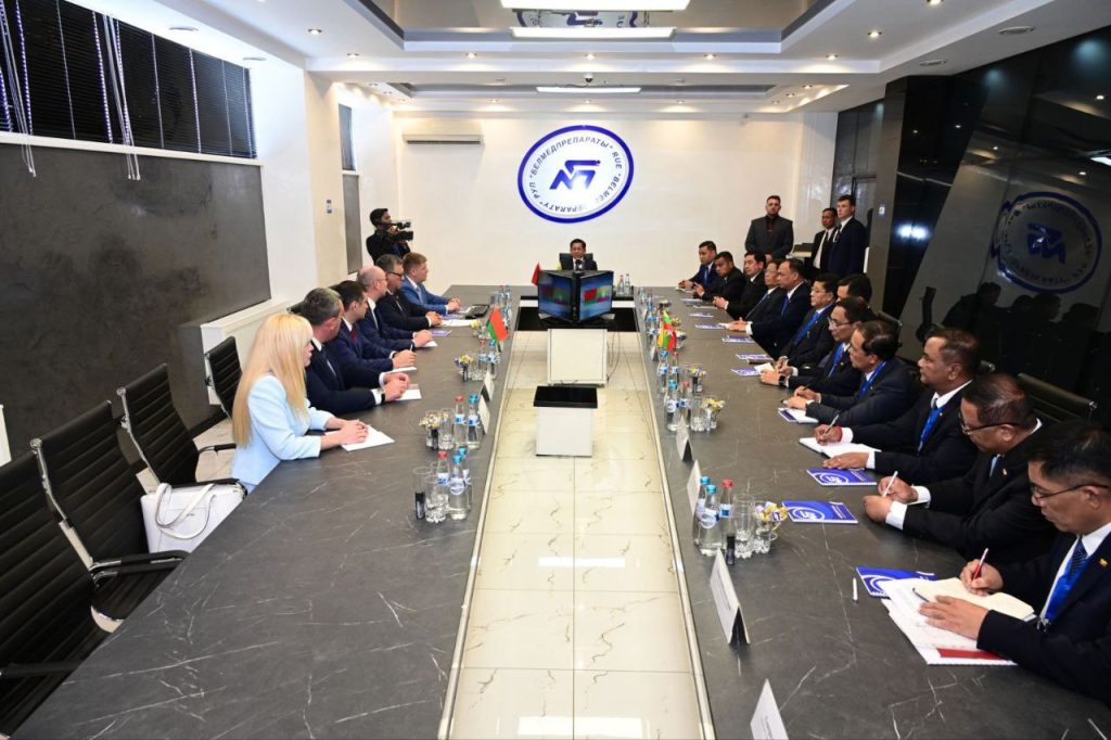 ယင်းနောက် SAC ဥက္ကဋ္ဌနှင့် အဖွဲ့ဝင်များ၊ ဘယ်လာရုစ်သမ္မတနိုင်ငံ၊ ကျန်းမာရေးဝန်ကြီးဌာနဝန်ကြီးနှင့် အဖွဲ့ဝင်များသည် ဆေးဝါးစက်ရုံ အစည်းအဝေးခန်းမအတွင်း တွေ့ဆုံ၍ နှစ်နိုင်ငံအကြား ကျန်းမာရေးကဏ္ဍတွင် ပူးပေါင်းဆောင်ရွက်နိုင်မည့်အခြေအနေများ၊ ဘယ်လာရုစ်နိုင်ငံမှ ထုတ်လုပ်သည့် ဆေးနှင့်ဆေးပစ္စည်းဆိုင်ရာများအား မြန်မာနိုင်ငံကျန်းမာရေးကဏ္ဍတွင် အသုံးပြုသွားနိုင်မည့်အခြေအနေများ၊ Belmedpreparaty ဆေးဝါးစက်ရုံမှ တာဝန်ရှိသူများနှင့် မြန်မာနိုင်ငံမှ ကျန်းမာရေးဆိုင်ရာတာဝန်ရှိသူတို့ အသေးစိတ် ဆက်လက်ဆွေးနွေးဆောင်ရွက်သွားမည့် အခြေအနေများနှင့် ပတ်သက်၍ အမြင်ချင်းဖလှယ်ဆွေးနွေးခဲ့ကြသည်။