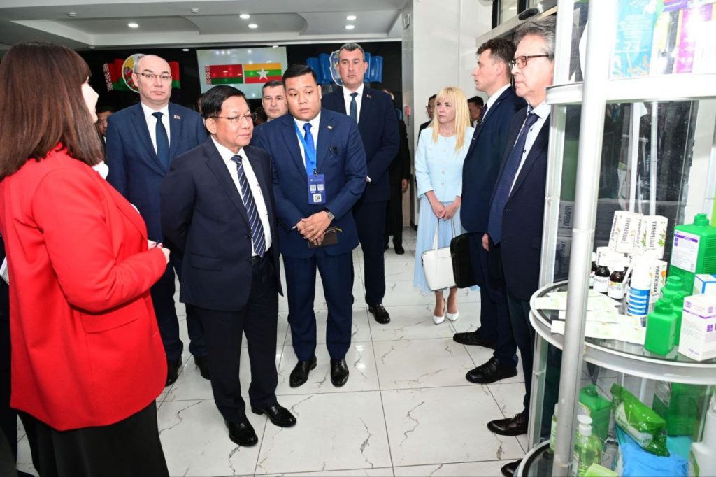 ထို့နောက် ဘယ်လာရုစ်နိုင်ငံမှ ထုတ်လုပ်ထားသည့် ဆေးဝါးများပြခန်း၊ ဆေးကုသမှုများ ဆောင်ရွက်ရာတွင် အသုံးပြုသည့် စက်ကိရိယာများပြခန်းတို့အတွင်း ခင်းကျင်းပြသထားရှိမှုများအား ကြည့်ရှုလေ့လာကြပြီး ရှင်းလင်းတင်ပြမှုများအပေါ် သိရှိလိုသည်များ SAC ဥက္ကဋ္ဌနှင့် အဖွဲ့ဝင်များက ပြန်လည်မေးမြန်းဆွေးနွေးကြသည်။