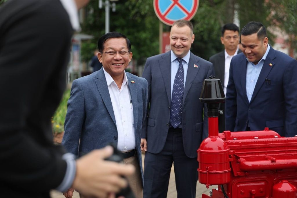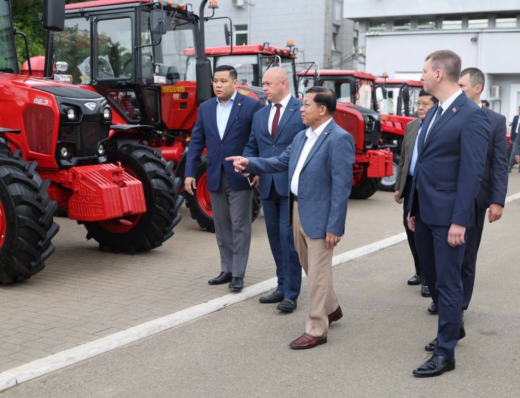 ဘယ်လာရုစ်နိုင်ငံသို့ ရောက်ရှိနေသည့် နိုင်ငံတော်စီမံအုပ်ချုပ်ရေးကောင်စီ (SAC) ဥက္ကဋ္ဌ နိုင်ငံတော်ဝန်ကြီးချုပ် ဗိုလ်ချုပ်မှူးကြီးမင်းအောင်လှိုင် ဦးဆောင်သည့် အဆင့်မြင့်ကိုယ်စားလှယ်အဖွဲ့သည် ယနေ့ ဒေသစံတော်ချိန် နံနက်ပိုင်းတွင် ဘယ်လာရုစ်နိုင်ငံ၊ မင့်စ်မြို့ရှိ Minsk Tractor Works ထွန်စက်စက်ရုံကို သွားရောက်လေ့လာခဲ့သည်။