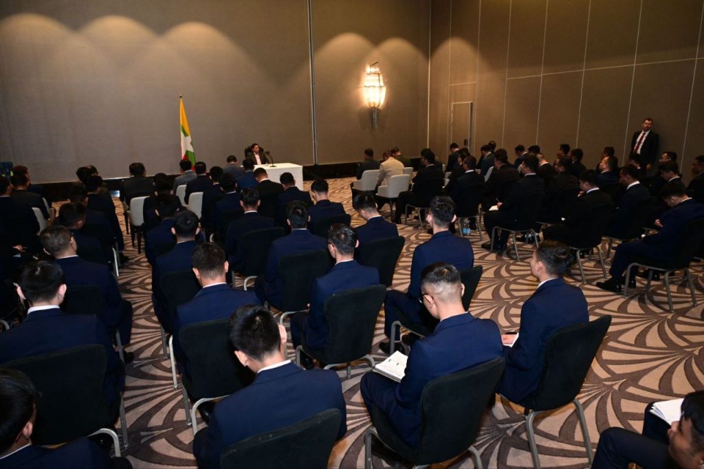 ဘယ်လာရုစ်သမ္မတနိုင်ငံသို့ ရောက်ရှိနေသည့် နိုင်ငံတော်စီမံအုပ်ချုပ်ရေးကောင်စီ (SAC) ဥက္ကဋ္ဌ နိုင်ငံတော်ဝန်ကြီးချုပ် ဗိုလ်ချုပ်မှူးကြီး မင်းအောင်လှိုင်သည် ဇွန်လ ၂၇ ရက် ဒေသစံတော်ချိန် ညနေပိုင်းတွင် ဘယ်လာရုစ်သမ္မတနိုင်ငံရှိ ပညာတော်သင် သင်တန်းသားအရာရှိများအား တွေ့ဆုံအမှာစကားပြောကြားခဲ့သည်။