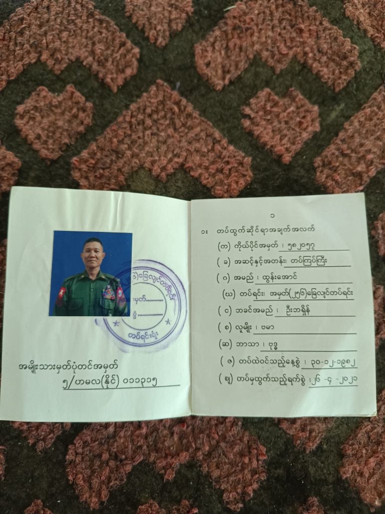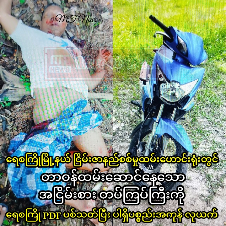 ရေစကြိုမြို့နယ် ငြိမ်းဇာနည်စစ်မှုထမ်းဟောင်းရုံးတွင်တာဝန်ထမ်းဆောင်နေသော အငြိမ်းစားတပ်ကြပ်ကြီးကို ရေစကြို PDF က ပစ်သတ်လိုက်ပြီး ပါရှိပစ္စည်းများအကုန် လုယက်လိုက်မှု ယနေ့ ကျူးလွန်ခဲ့သည်ဟု သတ်ဖြတ်လုယက်သည့် ရေစကြိုမြို့နယ် ပြည်သူ့ကာကွယ်ရေးတပ်ဖွဲ့က ဝန်ခံထားသည်။