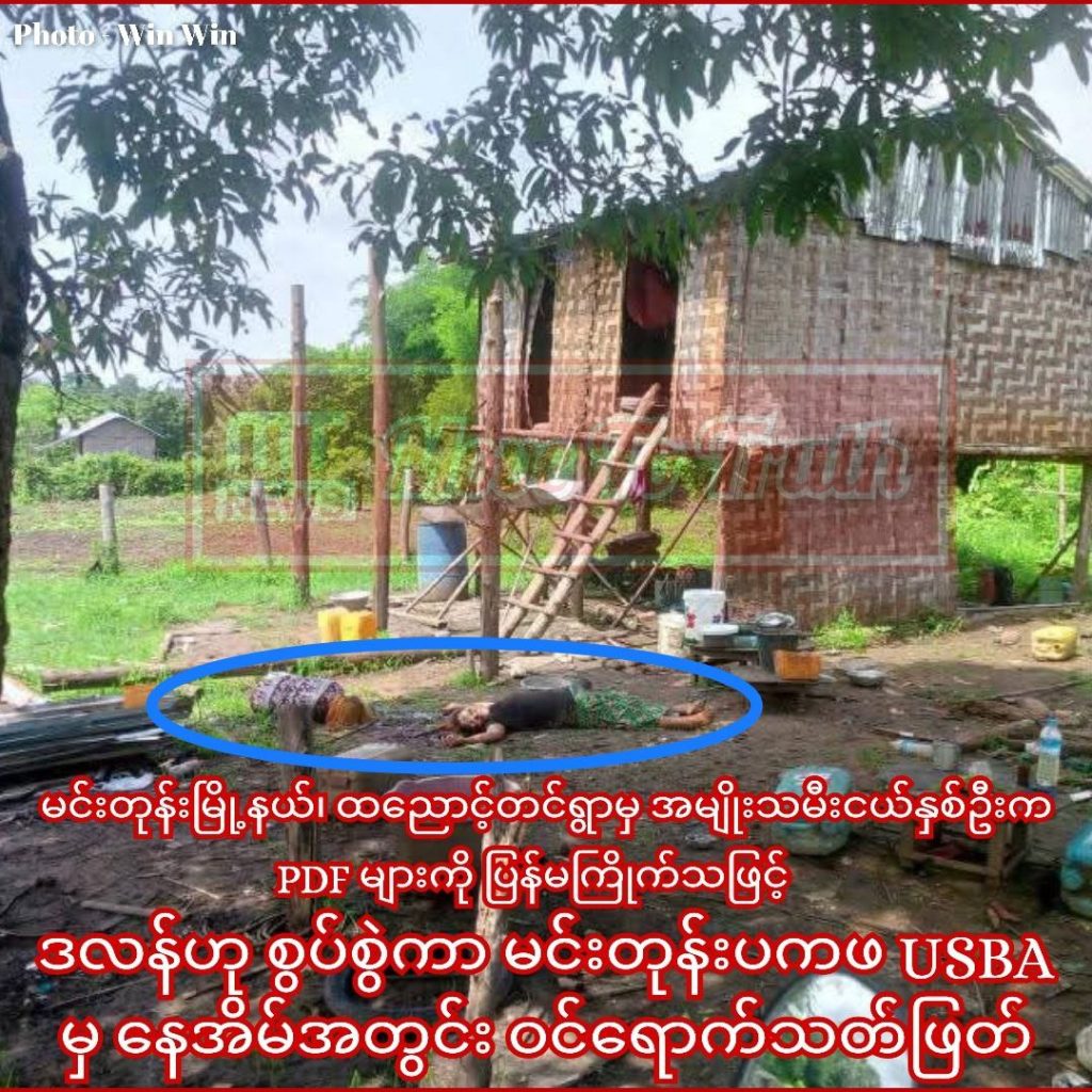 မင်းတုန်းမြို့နယ်၊ ထညောင့်တင်ရွာမှ အမျိုးသမီးငယ်နှစ်ဦးက PDF များကို ပြန်မကြိုက်သဖြင့် ဒလန်ဟုစွပ်စွဲကာ မင်းတုန်းပကဖအဖွဲ့ဖြစ်သော USBA (United States Of Burma Army) မှ နေအိမ်အတွင်း ဝင်ရောက်သတ်ဖြတ်လိုက်သည်ဟု သိရသည်။