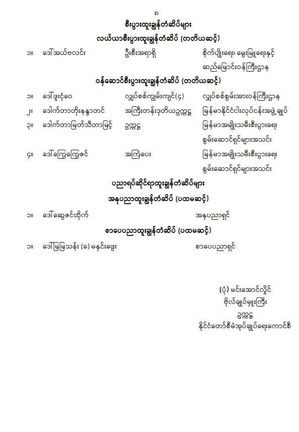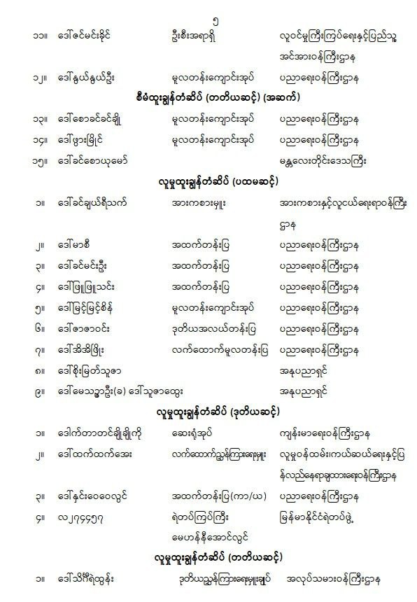 သက်ဆိုင်ရာလုပ်ငန်းနယ်ပယ်အလိုက် ထူးချွန်ပြောင်မြောက်စွာ ကြိုးပမ်းဆောင်ရွက်ခဲ့ကြသည့် အမျိုးသမီးများအား စွမ်းဆောင်မှုဆိုင်ရာ ဂုဏ်ထူးဆောင်ဘွဲ့များ၊ ဂုဏ်ထူးဆောင်တံဆိပ်များ ပေးအပ်ခဲ့ကြောင်းလည်း နိုင်ငံတော်စီမံအုပ်ချုပ်ရေးကာင်စီ၏ အမိန့်ကြော်ငြာစာအမှတ် (၉၅/၂၀၂၅) ဖြင့် ဇူလိုင်လ ၂ ရက်တွင် ထုတ်ပြန်ထားသည်။