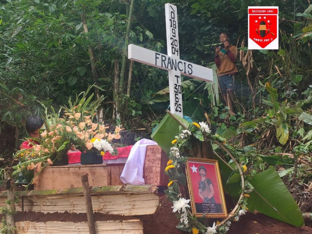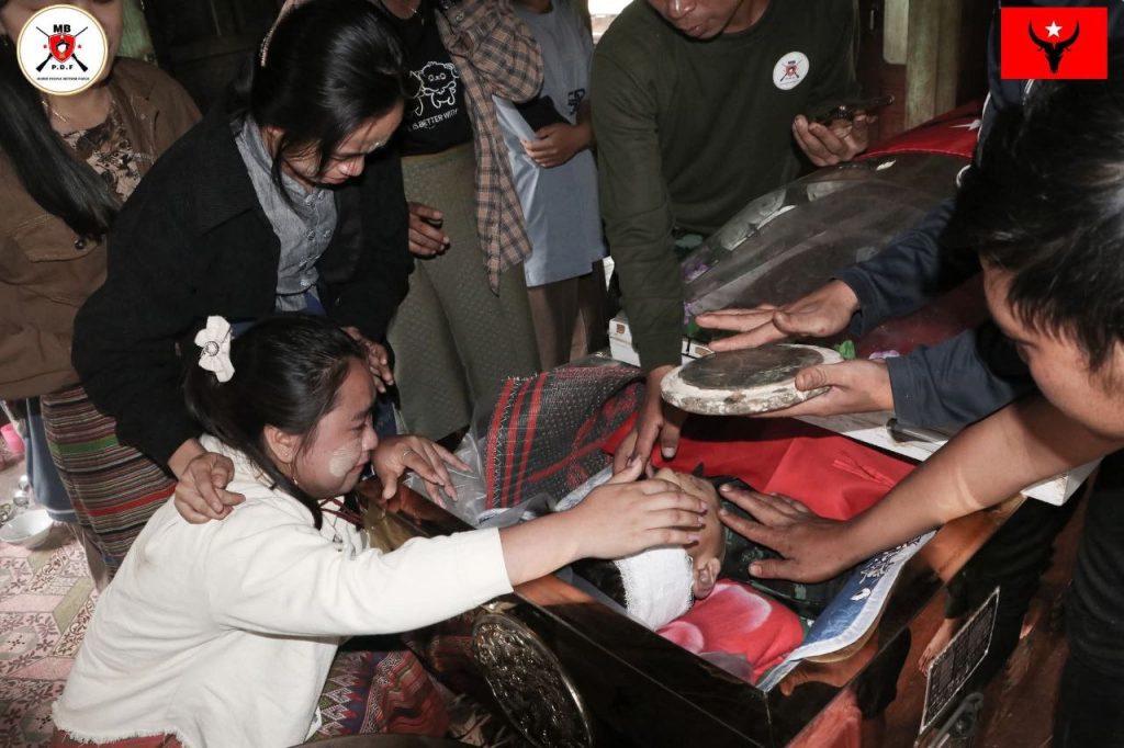 ပုံစာ။ တပ်မတော်၏ မိုးဗြဲမြို့သိမ်းတိုက်ပွဲအတွင်း သေဆုံးကုန်သော ကယားလက်နက်ကိုင်နှင့် PDF အချို့၏ အသုဘမြင်ကွင်း။