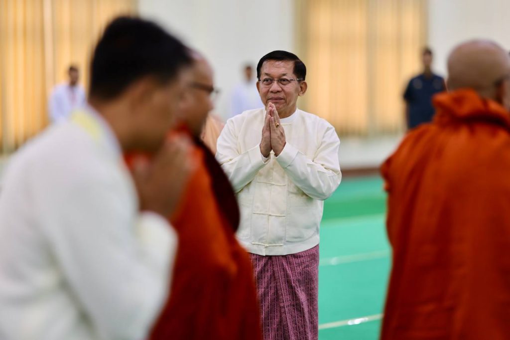 နိုင်ငံတော်စီမံအုပ်ချုပ်ရေးကောင်စီ၏ ၂၀၂၅ ခုနှစ် ဝါဆိုသင်္ကန်းဆက်ကပ်လှူဒါန်းပွဲနှင့် မာရဝိဇယ ဗုဒ္ဓရုပ်ပွားတော်မြတ်ကြီး ဗုဒ္ဓဘိသေကအနေကဇာတင်အောင်ပွဲ (၂)နှစ်ပြည့် အခမ်းအနားကို ယနေ့ နံနက်ပိုင်းတွင် နေပြည်တော်၊ မာရဝိဇယဗုဒ္ဓဥယျာဉ်တော် ပရိဝုဏ်အတွင်းရှိ အဂ္ဂါဓိပတိသာသနာ့ဗိမာန်တော်ကြီး၌ ကျင်းပရာ နိုင်ငံတော်စီမံအုပ်ချုပ်ရေးကောင်စီ (SAC) ဥက္ကဋ္ဌ နိုင်ငံတော်ဝန်ကြီးချုပ် ဗိုလ်ချုပ်မှူးကြီးမင်းအောင်လှိုင်နှင့် ဇနီးဒေါ်ကြူကြူလှတို့ တက်ရောက်ကြည်ညိုပြီး ဝါဆိုသင်္ကန်းနှင့်လှူဖွယ်ပစ္စည်းများ ဆက်ကပ်လှူဒါန်းခဲ့သည်။