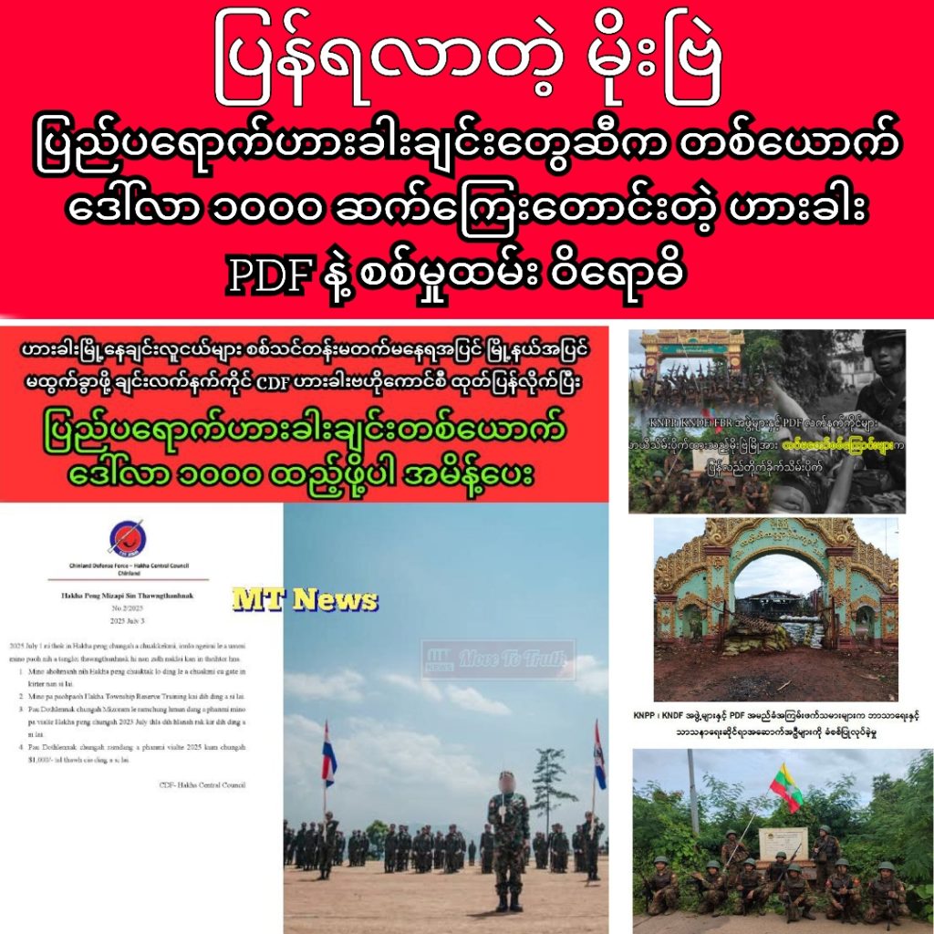 အခုတစ်ခါမှာလည်း ဟားခါးချင်းလက်နက်ကိုင်အဖွဲ့ဟာ ဟားခါးမြို့နေ ချင်းလူငယ်အကုန်လုံးစစ်သင်တန်း မတက်မနေရအမိန့်၊ မြို့ပြင်အထွက်မခံဘူးဆိုတဲ့အမိန့်တွေအပြင် နိုင်ငံခြားရောက်ပြီးသား ဟားခါးချင်းတွေကလည်း ဒီ ၂၀၂၅ အတွက် တစ်ယောက်ကို ဒေါ်လာ ၁၀၀၀ ဟားခါးချင်း PDF ဆီ မဖြစ်မနေလှူရမယ်လို့ အမိန့်ထုတ်ခဲ့ပါသေးတယ်။ တပ်မတော်ရဲ့ စစ်မှူထမ်းအမိန့်ကို ဝေဖန်နေကြသူတွေဟာ TNLA၊ MNDAA၊ AA၊ KNU၊ KIA၊ PDF နဲ့ ချင်းလက်နက်ကိုင်တွေရဲ့ အဓမ္မစစ်သားစုမှုတွေ၊ ဆက်ကြေးတောင်းမှုတွေကိုတော့ မဝေဖန်ရဲလို့ ရိုးသားတဲ့တိုင်းရင်းသားပြည်သူတွေဟာ လက်နက်ကိုင်တွေ အကြမ်းဖက်သမျှ ငုံ့ခံနေရပြီး သူတို့အသံကို ကိုယ်စားပြုမယ့် မီဒီယာအဖွဲ့အစည်းလည်း ရှိမနေဘဲ ငါတို့လွတ်မြောက်မယ်။ ဖက်ဒရယ်ဒီမိုကရေစီရမယ်ဆိုတဲ့ စကားလုံးတွေနဲ့ သာမန်ပြည်သူကို ကျွန်ပြုထားပြီး တိုင်းရင်းသားစစ်ခေါင်းဆောင်တွေက ပြည်ပနိုင်ငံသားအဖြစ်နဲ့ စည်းစိမ်ခံနေတာလည်း မြင်ရပါသေးတယ်။ ဖက်ဒရယ်ဒီမိုကရေစီကို တကယ်သွားချင်တယ်ဆိုရင် လက်နက်ကိုင်ထားသူအားလုံးရဲ့ မတရားမှု၊ အဓမ္မမှုတွေအကုန်လုံးကို လက်ညှိုးထိုးဖို့လိုပြီး ဥပဒေလိုက်နာရတဲ့ တပ်မတော်ပဲပြောမယ်။ ဥပဒေမလိုက်နာရတဲ့ တိုင်းရင်းသားလက်နက်ကိုင်တွေ ငါပြောရင် အသတ်ခံရမယ်ဆိုတဲ့ ကြောက်စိတ်နဲ့ ဘာလုပ်လုပ်မပြောရဲဖြစ်နေသရွေ့တော့ ဖက်ဒရယ်ဒီမိုကရေစီဟာ လူထုနဲ့ နိုင်ငံနဲ့ မထိုက်တန်သေးဘူးလို့ဘဲ ပြောရမှာဖြစ်ပြီး လူထုနဲ့ထိုက်တန်တဲ့ ဖက်ဒရယ်ဒီမိုကရေစီကို ရှိရင်းစွဲ ၂၀၀၈ ခုနှစ် ဖွဲ့စည်းပုံအခြေခံဥပဒေနဲ့ ဆက်သွားပြီး လာမယ့်ရွေးကောက်ပွဲကနေ ဆင့်ကဲ ဝေဖန်ပြောင်းလဲတာက ပိုမိုမြန်ဆန်ပါမယ်။