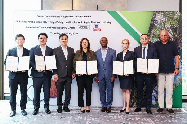 မျောက်များကို လုပ်သားအဖြစ် အသုံးချပြီး အုန်းသီးခူးရန်ခိုင်းစေမှုကြောင့် ကျဆင်းနေသော ထိုင်းနိုင်ငံ၏ အုန်းကဏ္ဍ စက်မှုလုပ်ငန်းပုံရိပ်ကို ကယ်တင်ရန်နှင့် တောင်သူများ၏ အသက်မွေးဝမ်းကြောင်းကို ကာကွယ်ရန်အတွက် ထိုင်းနိုင်ငံမှ အုန်းစက်မှုလုပ်ငန်းအဖွဲ့ (Thai Coconut Industry Group) သည် Wildlife Friends Foundation Thailand (WFFT) နှင့် ပူးပေါင်းကာ မျောက်လုပ်အားကို အသုံးချမှုအား အပြီးတိုင် ပိတ်ပင်ရန် ဆောင်ရွက်ခဲ့ခြင်းလည်းဖြစ်သည်။