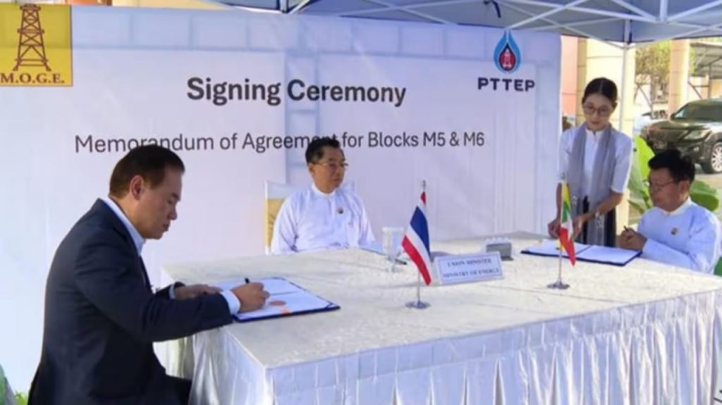 ထိုင်းနိုင်ငံမှ စွမ်းအင်လုပ်ငန်းအုပ်စု PTT သည်လည်း ၎င်း၏ လုပ်ငန်းခွဲတစ်ခုမှတစ်ဆင့် MOGE နှင့် ဧပြီလတွင် သီးခြားကမ်းလွန်ဓာတ်ငွေ့လုပ်ကွက်တစ်ခု၏ ထုတ်လုပ်မှုကို တိုးချဲ့ရန် ကနဦးသဘောတူညီချက် ရရှိခဲ့သည်။