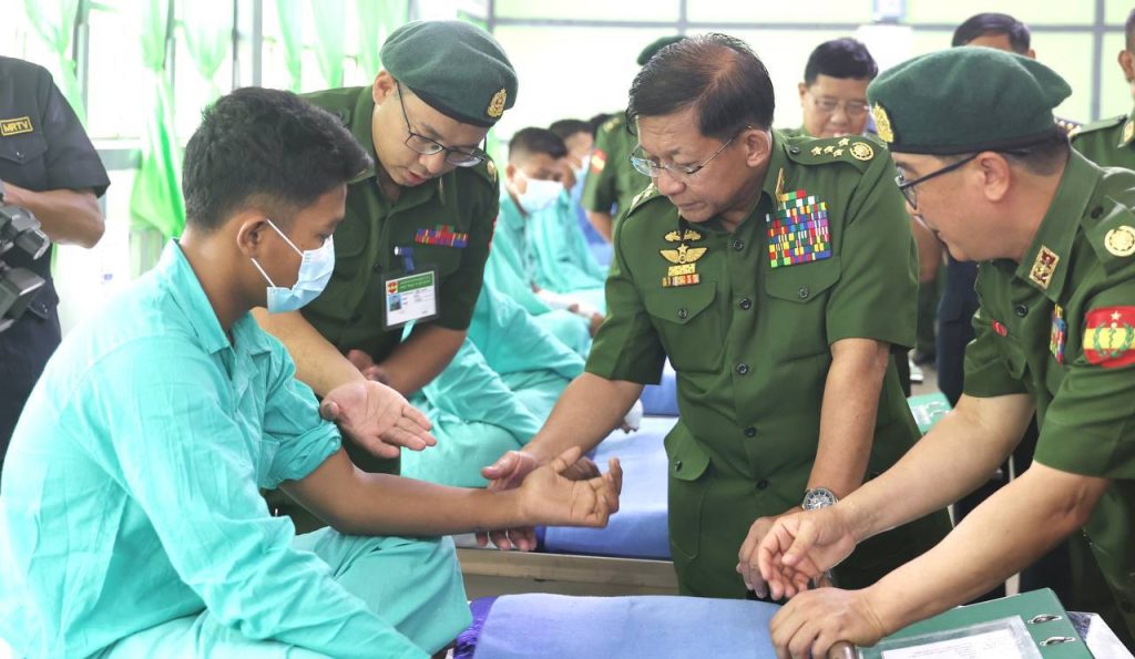 ထို့နောက် SAC ဥက္ကဋ္ဌသည် မိတ္ထီလာမြို့ရှိ တပ်မတော်ဆေးရုံတွင် ဆေးရုံတက်ရောက်ကုသမှုခံယူလျက်ရှိသည့် အရာရှိ၊ စစ်သည်များ၏ ကျန်းမာရေးအခြေအနေများအား သွားရောက်ကြည့်ရှုအားပေးခဲ့ပြီး ဂုဏ်ပြုချီးမြှင့်ငွေနှင့် လက်ဆောင်ပစ္စည်းများပေးအပ်ခဲ့သည်။