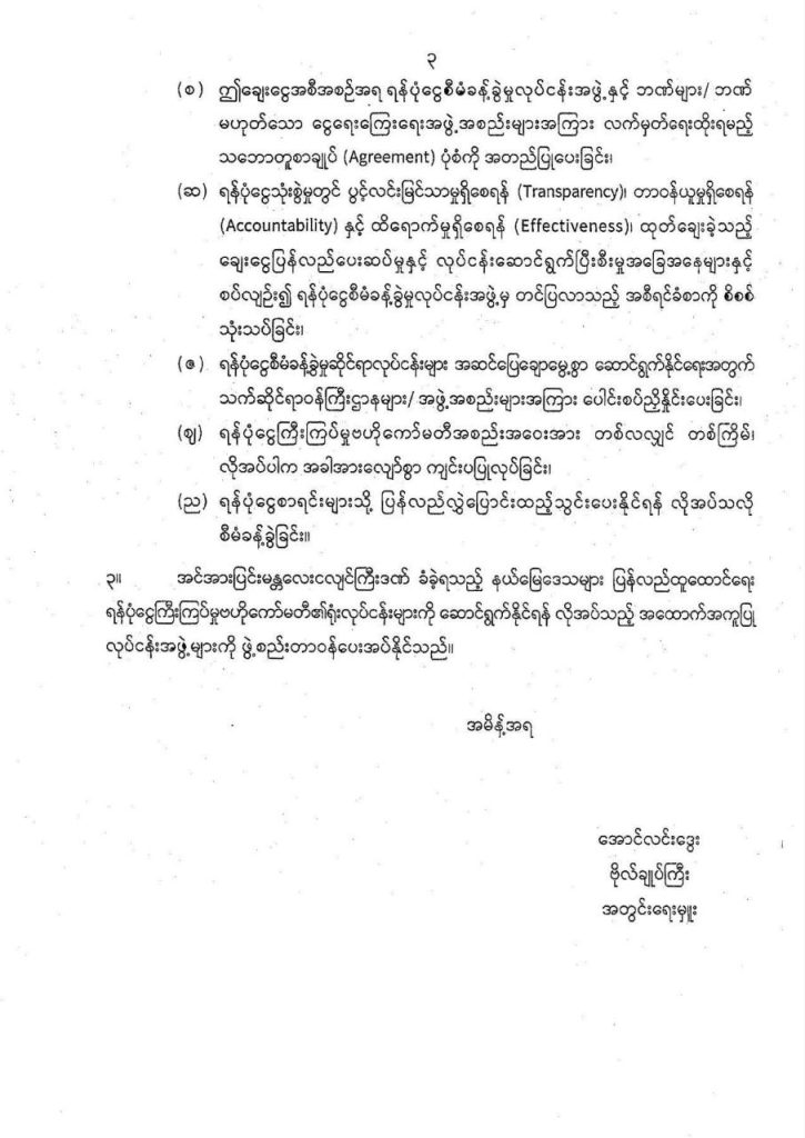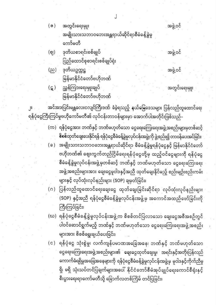 ထို့ပြင် အင်အားပြင်းမန္တလေးငလျင်ကြီးဒဏ်ခံခဲ့ရသည့် နယ်မြေဒေသများ ပြန်လည်ထူထောင်ရေး ရန်ပုံငွေကြီးကြပ်မှုဗဟိုကော်မတီ၏ရုံးလုပ်ငန်းများကို ဆောင်ရွက်နိုင်ရန် လိုအပ်သည့် အထောက်အကူပြု လုပ်ငန်းအဖွဲ့များကို ဖွဲ့စည်းတာဝန်ပေးအပ်နိုင်ကြောင်း ဖော်ပြထားသည်။