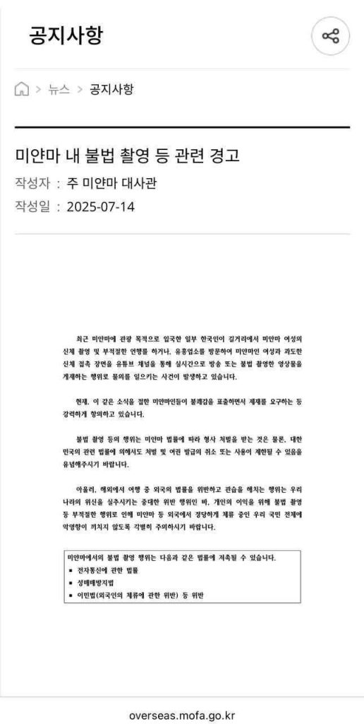 အဆိုပါ STOP Sexual Abuse to the children အဖွဲ့ အစည်းက သူတို့ ထုတ်ဖော်ပြောကြားထားတဲ့ ကိုရီးယားအမျိုးသားနဲ့ တွေ့ဆုံဖူးတာ၊ ထုတ်လွှင့်မှု video တွေထဲမှာ ပါ၀င်ခဲ့တာ စတဲ့ အမျိုးသမီးအနေနဲ့ သူတို့အဖွဲ့ထံ လာရောက်သတင်းပေးနိုင်ကြောင်းနဲ့ တရားဥပဒေအရအရေးယူဖို့ ဆောင်ရွက်သွားမှာဖြစ်တာကြောင့် လာရောက်ပူးပေါင်းလိုတဲ့ အမျိုးသမီးတွေရဲ့ ကိုယ်ရေးအချက်အလက်တွေကိုလည်း ထိန်းသိမ်းပေးမယ်လို့ အသိပေးထားပါတယ်။