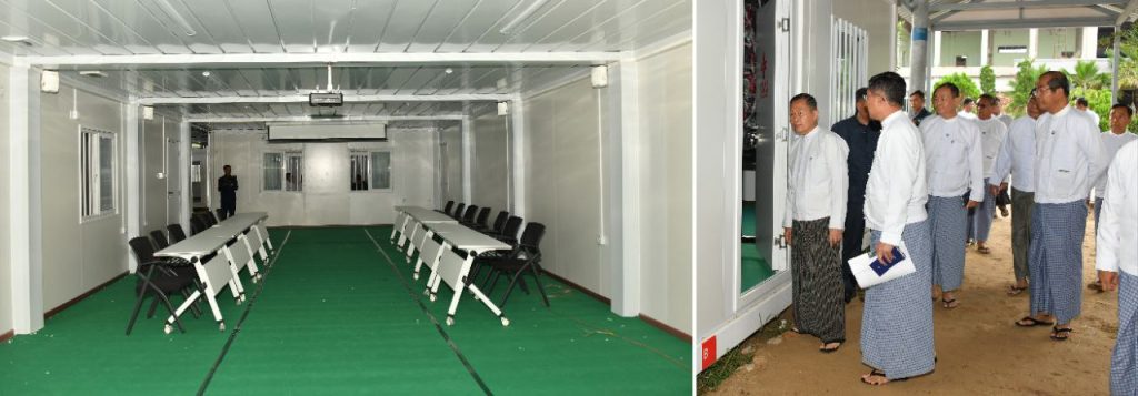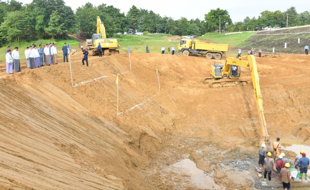ယင်းနောက် RC မြေထိန်းနံရံများတည်ဆောက်ရန်အတွက် Bored Pile တူးဖော်နေမှု၊ ရုံးဝင်းအတွင်း Prefabricated Office (၄၀ ပေ x ၄၀ပေ) နှင့် (၄၀ ပေ x ၆၀ ပေ) များဖြင့် ယာယီရုံးခန်းများဖွင့်လှစ်၍ ရုံးလုပ်ငန်းများ ဆောင်ရွက်နေမှု အခြေအနေများကို SAC ဒုတိယဥက္ကဋ္ဌက ကြည့်ရှုစစ်ဆေးပြီး လိုအပ်သည်များကို လမ်းညွှန်မှာကြားခဲ့သည်။