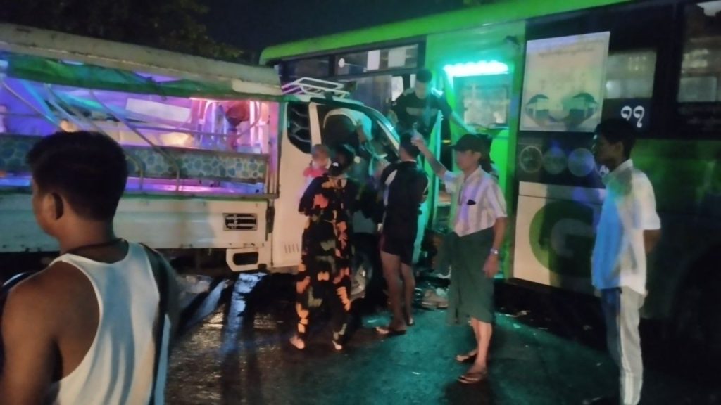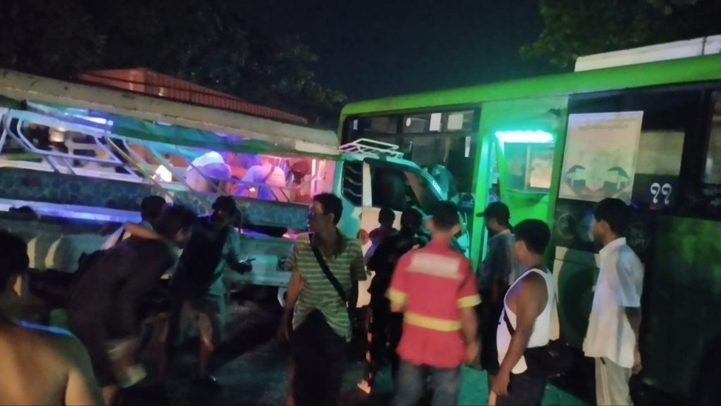 ယာဉ်လိုင်းသိမ်းလာတဲ့ YBS ခရီးသည်တင်ယာဉ်နဲ့ အောက်ဆိုက်ပြေးဆွဲတဲ့ Bongo ယာဉ်နှစ်စီး တိုက်မိပြီး အောက်ဆိုက်ကားပေါ်ပါ ယာဉ်မောင်းနဲ့ ခရီးသည် စုစုပေါင်း ၁၆ ဦး ဒဏ်ရာရရှိခဲ့တဲ့ ဖြစ်စဉ် မနေ့က ဇူလိုင် ၁၆ ရက် ည ၈ နာရီကျော်အချိန်က ရန်ကုန်တိုင်းဒေသကြီး၊ အင်းစိန်မြို့နယ်၊ အောင်ဆန်းရပ်ကွက်၊ အောက်မင်္ဂလာဒုံလမ်းမပေါ်မှာ ဖြစ်ပွားခဲ့တယ်လို့ မြေပြင်အကူအညီရောက်ရှိခဲ့တဲ့ ဒေသခံလူမှုကူညီရေး အသင်းတချို့ထံကနေ သိရပါတယ်။