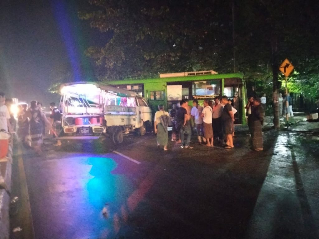 ဖြစ်စဉ်က YBS 77 ယာဉ်ဟာ တစ်ဖက်လမ်းကနေ ဆန်ကျင်ဘက်လားရာလမ်းဆီ ဖြတ်ကွေ့လာရာမှာ တည့်ကြောကနေ လာတဲ့ အောက်ဆိုက်ကားက ခါးလယ်ကို ဝင်တိုက်တာလို့ သိရပါတယ်။ ယာဉ်တိုက်မှုကြောင့် YBS ပေါ်က ခရီးသည်မပါလို့ လူထိခိုက်မှုမရှိခဲ့ပေမယ့် အောက်ဆိုက်ကားပေါ်က ယာဉ်မောင်းအပါအဝင် ခေါင်းခန်းကနေ စီးနင်းလာတဲ့ ကလေးတစ်ဦးနဲ့ အမျိုးသမီးတစ်ဦး ထိခိုက်ဒဏ်ရာများခဲ့ပြီး ကလေးမှာ ဦးခေါင်းမှန်စိုက်ဝင်ဒဏ်ရာရခဲ့တာကြောင့် အင်းစိန်ဆေးရုံကြီးဆီ အမြန်ပို့ဆောင်ခဲ့ရတယ်လို့ သိရပါတယ်။