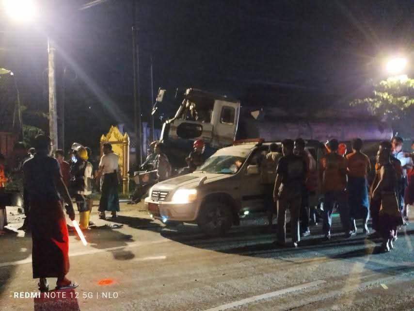 ရန်ကုန်တိုင်းဒေသကြီး၊ ဒဂုံမြို့သစ်(ဆိပ်ကမ်း) မြို့နယ်၊ (၆၁) ရပ်ကွက်၊ ရတနာလမ်းနှင့် ချင်းတွင်းလမ်းထောင့်တွင် ရပ်ထားသော ကွန်တိန်နာယာဥ်ကို ဆီဘောက်ဆာယာဥ်က အရှိန်မထိန်းနိုင်ဘဲ ဝင်တိုက်ရာမှ ဆီဘောက်ဆာယာဥ်မောင်းသေဆုံးမှု ဇူလိုင်လ ၁၇ ရက် ည ၉ နာရီ ၃၉မိနစ်ခန့်က ဖြစ်ပွားခဲ့ကြောင်း ကယ်ဆယ်ရေးဆောင်ရွက်သူများထံမှ သိရသည်။