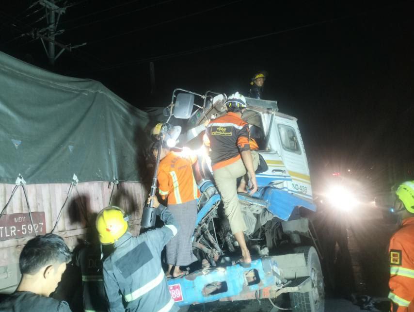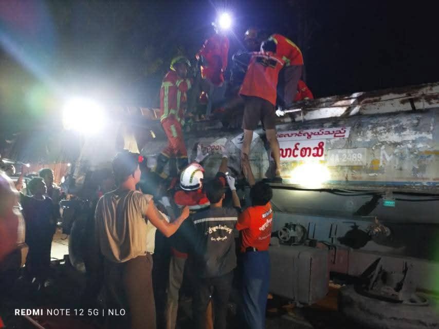 “ရပ်ထားတဲ့တွဲကားက အင်ဂျင်တောင်ချထားတာ။ ဆီဘောက်ဆာက နောက်ကနေဝင်တိုက်ပြီး ရပ်ထားတဲ့ကားနဲ့တွဲလျက် ပေ ၄၀ လောက် ရွေ့သွားတယ်။ ကားခေါင်းလည်းကြေသွားတယ်။ ယာဥ်မောင်းကတော့ နေရာမှာတင် ဆုံးသွားတယ်”ဟု ကယ်ဆယ်ရေးလုပ်ဆောင်ခဲ့သူတစ်ဦးက ပြောသည်။