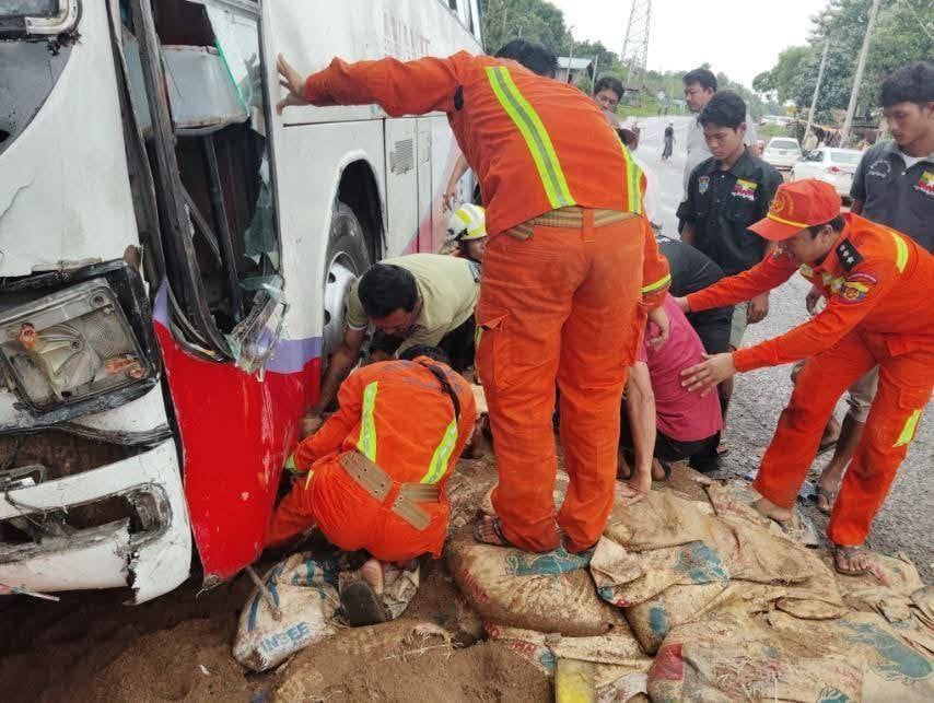 ယာဉ်တိုက်မှုဖြစ်ပွားတဲ့သတင်းအရ ကျိုက်ထိုမြိုနယ်မီးသတ်စခန်းမှ ရှာဖွေကယ်ဆယ်ရေးယာဉ်(၁)စီး၊ သန္ဓေမီးသတ်တပ်ဖွဲ့ဝင်တွေနဲ့ ရှာဖွေကယ်ဆယ်ရေးလုပ်ငန်းတွေ သွားရောက်ကူညီဆောင်ရွက်ခဲ့ပြီး ထိခိုက်ဒဏ်ရာရရှိသူနဲ့ သေဆုံးသူတိုရဲ့ ရုပ်အလောင်းကို ကျိုက်ထိုမြို့နယ် လူမှုကူညီရေးအသင်းမှယာဉ်နဲ့ ကျိုက်ထိုမြို့နယ် ပြည်သူ့ဆေးရုံဆီ ပို့ဆောင်ပေးခဲ့တယ်လို့ သိရပါတယ်။