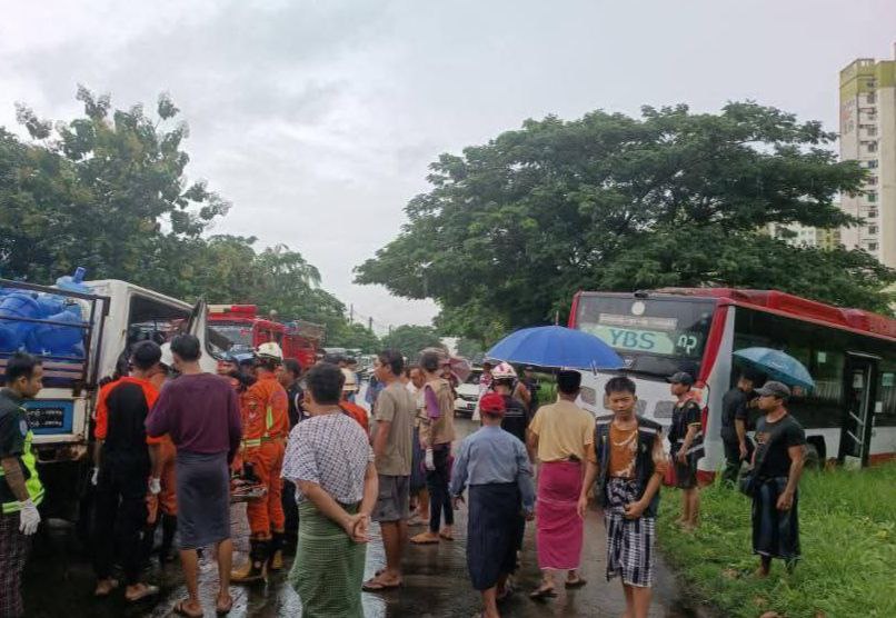 ရန်ကုန်တိုင်းဒေသကြီး၊ ဒဂုံဆိပ်ကမ်းမြို့နယ်၊ (၆၁) ရပ်ကွက်၊ ရတနာလမ်းတွင် ဇူလိုင်လ၂၁ ရက်၊ နေ့လယ် ၁ နာရီ ၁၂ မိနစ်ခန့်က ရေသန့်တင်ကားက အရှိန်မထိန်းနိုင်ဘဲ YBS- ၈၃ ယာဥ်ကို ဝင်တိုက်သဖြင့် ရေသန့်တင်ကားပေါ်မှ ယာဥ်မောင်းကားခေါင်းခန်းတွင် ညပ်နေ၍ ကယ်ထုတ်ခဲ့ရကြောင်း ကယ်ဆယ်ရေးဆောင်ရွက်ခဲ့သူများထံမှ သိရသည်။