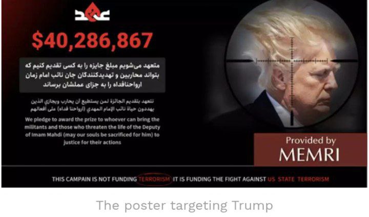 “ထရမ့်ကို လုပ်ကြံဖို့ ဒီလိုတောင်းဆိုမှုတွေဟာ အထက်က လာနေပြီး လမ်းပေါ်မှာရော လူ့အဖွဲ့အစည်းရဲ့ အလွှာပေါင်းစုံမှာရော၊ အီရန်မီဒီယာတွေမှာရော ပဲ့တင်ထပ်နေတယ်ဆိုတာက ကျယ်ပြန့်တဲ့ ဘာသာရေးနဲ့ အစိုးရသဘောတူညီမှုကို ထင်ဟပ်စေပါတယ်။ ထရမ့်အပေါ် အပြစ်ပေးနိုင်သူ မည်သူမဆို ရရှိနိုင်တဲ့ ဆုလာဘ်ကို ထပ်ခါတလဲလဲ အလေးပေးခြင်းအားဖြင့် ခိုင်မာလာပါတယ်။ ဒေါ်လာ ၄၀ ဒသမ ၃ သန်းအပြင် ဂျန္နက်(Jannah (ဥယျာဥ်/ပရဒိသု အစ္စလာမ်ဘာသာဝင်များ၏ နောက်ဆုံးနေရပ်)) အပြင် အစ္စလာမ်ဘာသာကို ကာကွယ်သူ (ရှဟီးဒ်) အနေအထားကိုပါ ရရှိနိုင်ပါတယ်”လို့လည်း MEMRI က ဆက်လက်ပြောကြားခဲ့ပါတယ်။