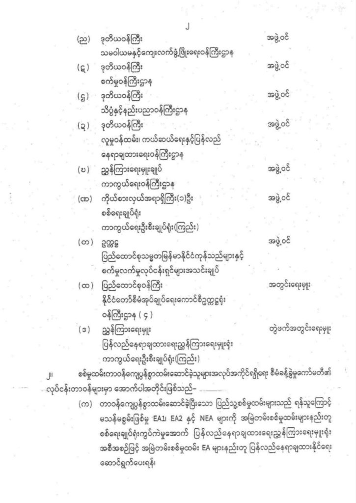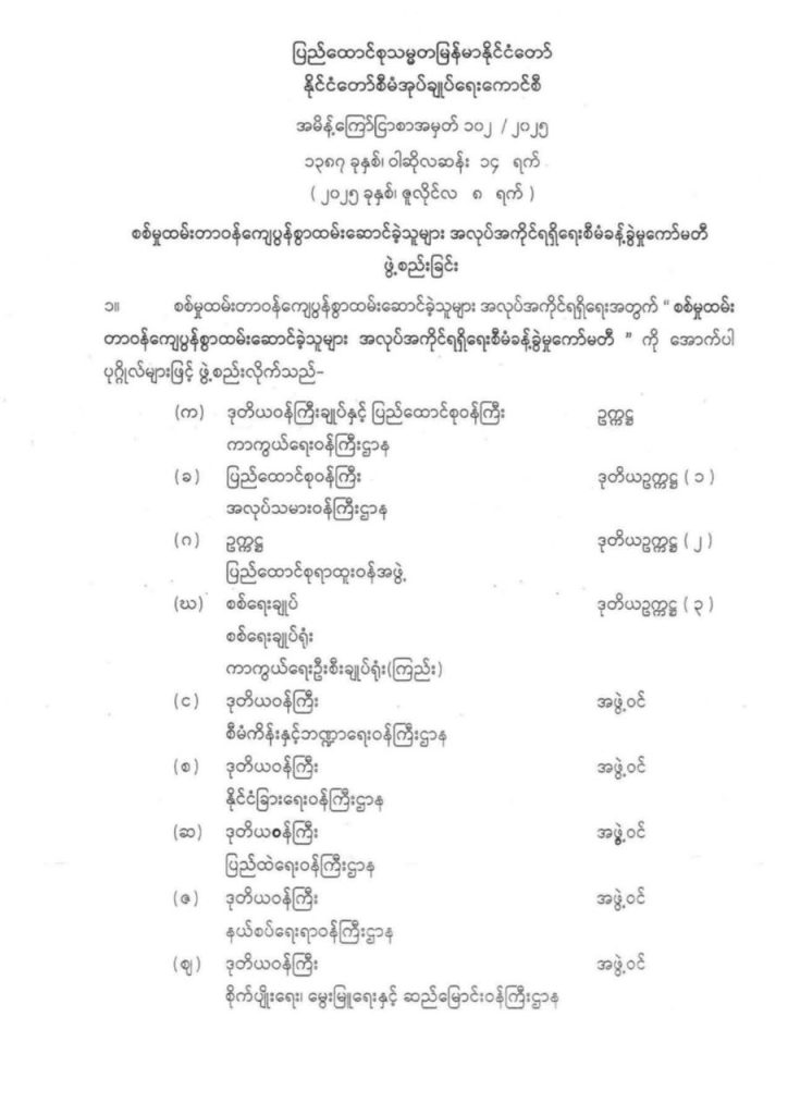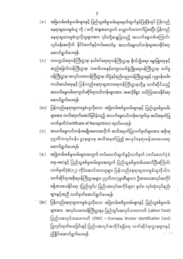 ◾️ ပြည်သူ့စစ်မှုထမ်းဆောင်ပြီးသူများအား သက်ဆိုင်ရာဝန်ကြီးဌာနများ၊ ပုဂ္ဂလိကကုမ္ပဏီများက ဦးစားပေးအလုပ်အကိုင် ခန့်ထားပေးနိုင်ရေးအပါအဝင် လုပ်ငန်းတာဝန် ၈ ခုတို့ကို ဆောင်ရွက်သွားမည်