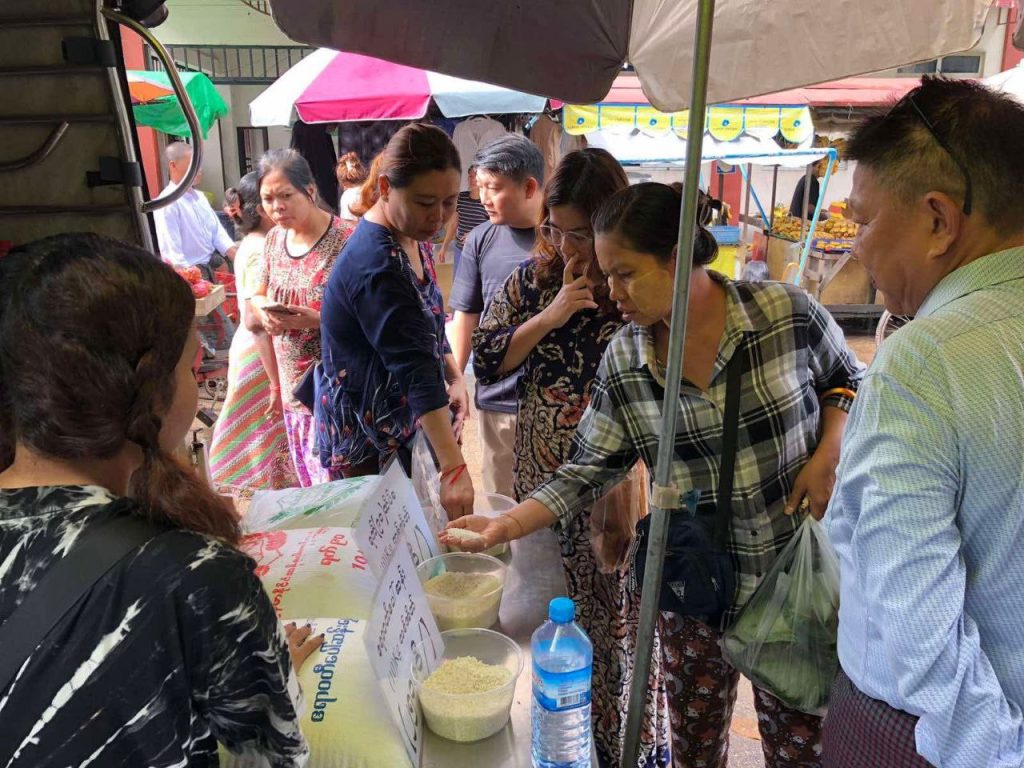 မြန်မာနိုင်ငံဆန်စပါးကုန်သည်များအသင်း၏ ဦးဆောင်လမ်းညွှန်မှုဖြင့် ဆန်စပါးကုန်စည်ဒိုင်များမှ ဈေးနှုန်းသက်သာစွာဖြင့် ဝယ်ယူစားသုံးနိုင်ရန်အတွက် ရန်ကုန်တိုင်းအတွင်းရှိ မြို့နယ်များသို့ ကားများဖြင့် ရွှေဘိုပေါ်ဆန်း၊ ဧရာဝတီပေါ်ဆန်းနှင့် ရက် (၉၀) ထိပ်စ 10 Kg ဆန်အိတ်များ ရောင်းချပေးလျက်ရှိသည်။