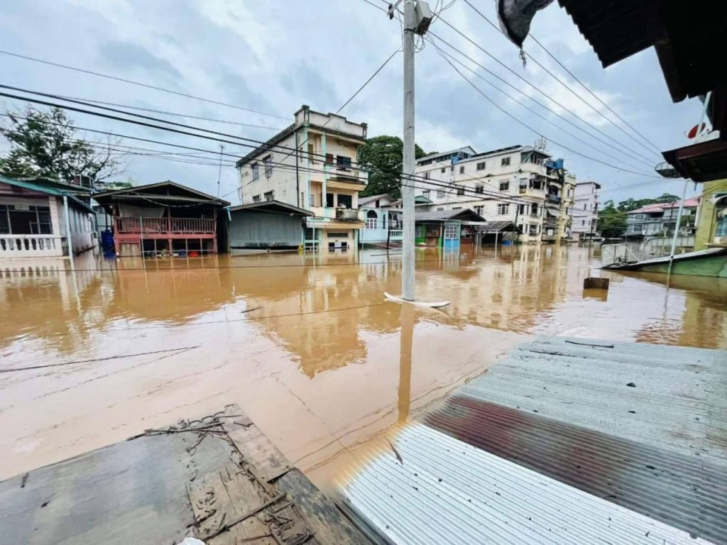 ယမန်နေ့ ဇူလိုင်လ ၂၃ ရက်မှစတင်၍ မြဝတီမြို့၊ မြေနိမ့်ပိုင်းရပ်ကွက်များအတွင်း ရေကြီးရေလျှံမှုများဖြစ်ပေါ် ခဲ့သည့်အတွက် ဒေသတာဝန်ရှိသူများက ရေဘေးသင့်ပြည်သူများကို ရေဘေးကယ်ဆယ်ရေးစခန်းများသို့ ပြောင်းရွှေ့ပေးခဲ့ကြရသည်။