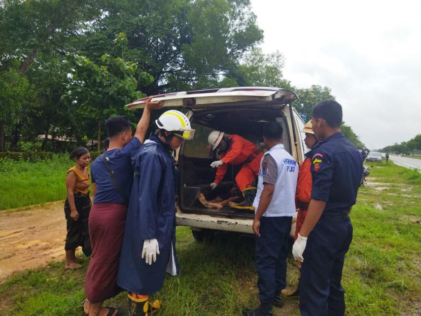 “HINO (၆)ဘီး ကားကလည်း သူတို့နဲ့ လမ်းကြောင်း အတူတူပဲ မောင်းလာတာ။ အရှိန်ပြင်းတော့ နောက်ကနေ ဝင်တိုက် တာ။ SUZUKI Carry မှာ နောက်က ထိုင်လိုက်လာတဲ့ လူတွေထဲက အမျိုးသမီး နှစ်ယောက်က ပွဲချင်းပြီးပဲ။ ဝင်တိုက်တဲ့ ၆ ဘီးကားပေါ်က နှစ်ယောက်က ဘာမှ မဖြစ်ဘူး”ဟု မီးသတ်တပ်ဖွဲ့ဝင်တစ်ဦးက MT News ကို ပြောသည်။