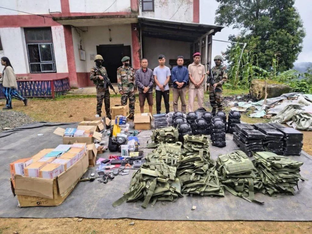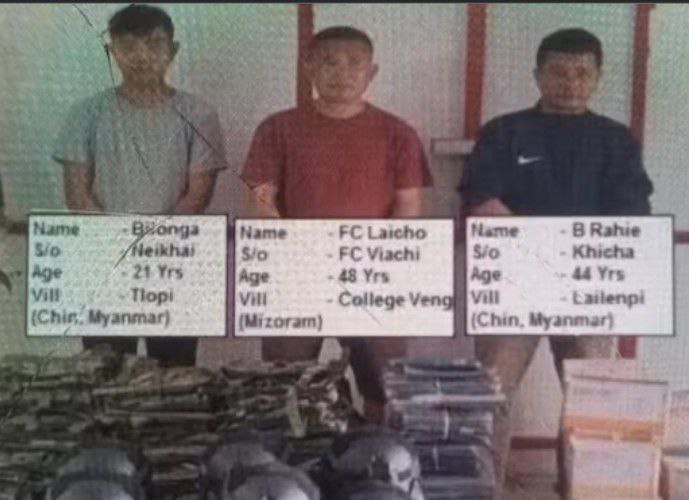 ပုံစာ။ အိန္ဒိယနိုင်ငံဘက်ခြမ်းတွင် မူးယစ်ဆေးနှင့် လက်နက်မှောင်ခိုသယ်ဆောင်မှုဖြင့် ဖမ်းမိထားသော ချင်းလက်နက်ကိုင် MDF ဒုဥက္ကဋ္ဌအပါအဝင် ချင်းလူမျိုးများကို တွေ့ရစဥ်။