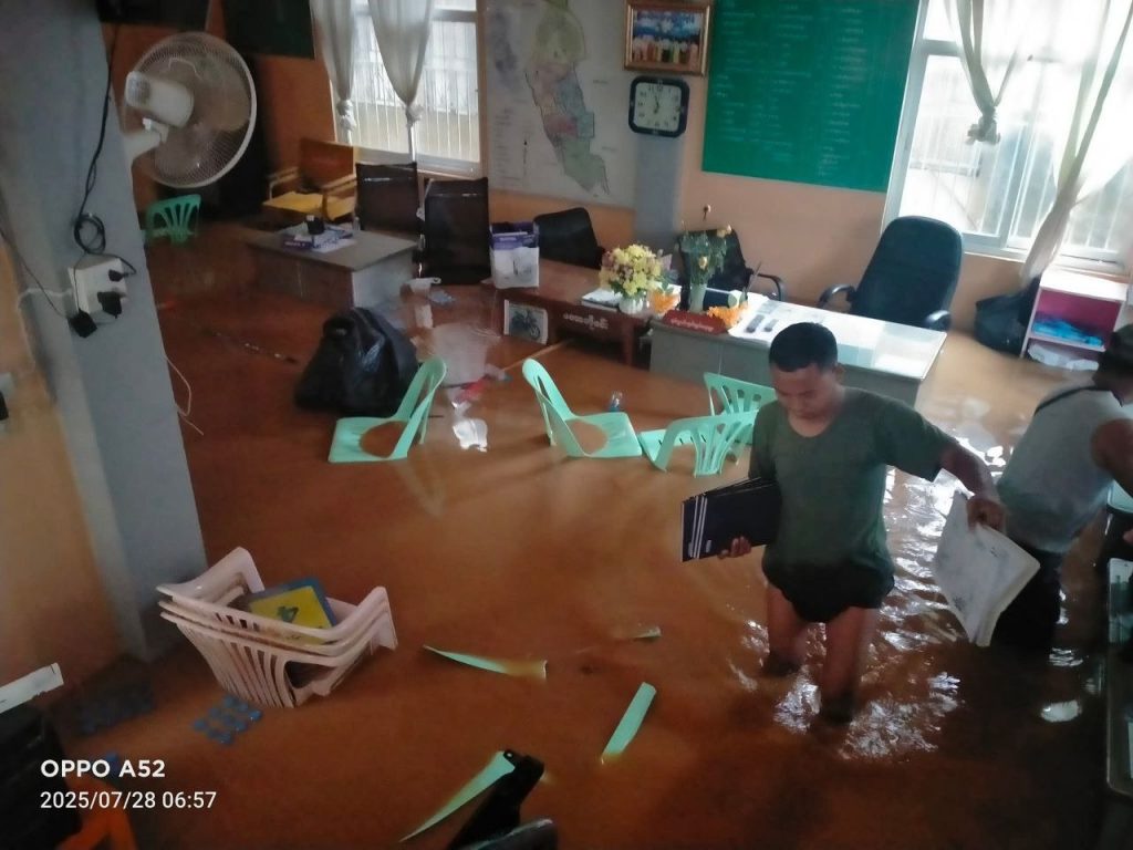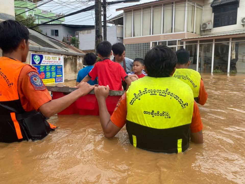 ဝီဖာ အပူပိုင်းမုန်တိုင်းရဲ့ သက်ရောက်မှုကြောင့် မိုးရွာသွန်းမှုနဲ့အတူ ရေကြီးရေလျံမှုဖြစ်စဉ်တချို့ ရှမ်းပြည်နယ်အရှေ့ပိုင်း တာချီလိတ်မြို့မှာ ပြီးခဲ့တဲ့ ဇူလိုင်လ ၂၆ ရက်နေ့ကတည်းက ဖြစ်ပေါ်နေပြီး တာချီလိတ်မြို့ ပုန်းထွန်ဇလဗေဒတိုင်းတာရေးစခန်းရဲ့ ဒီနေ့မနက် (၀၉း၃၀ )နာရီတိုင်းထွာချက်အရ မိုးရေချိန်(၃ ဒသမ ၁၂)လက်မနဲ့ မယ်ဆိုင်ချောင်းဟာ ရေမှတ်(၆၀၀) စင်တီမီတာမှာရောက်ရှိနေတယ်လို့ သိရပါတယ်။