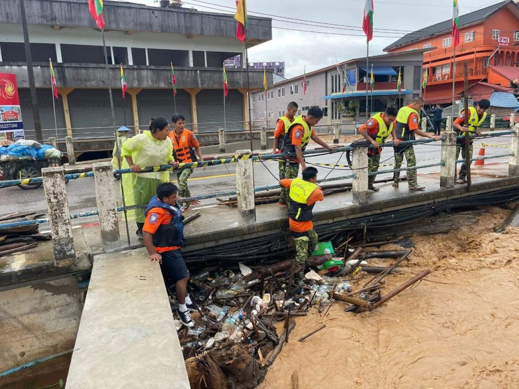 ဒီနေ့ ဇူလိုင်လ (၂၈)ရက်နေ့၊ နံနက် (၇:၃၅) မိနစ်မှာ မယ်ဆိုင်-တာချီလိတ် အမှတ်(၁)ချစ်ကြည်ရေးတံတား နယ်စပ်ဂိတ်ကို ယာယီပိတ်ထားလိုက်ပြီး ရေကြီးရေလျှံမှု အခြေအနေ ကောင်းမွန်လာမှသာ ပုံမှန်အတိုင်း ပြန်ဖွင့်မယ်လို့ သိရပါတယ်။ ပုန်းထွန်၊ တာလော့နဲ့ မကာဟိုခမ်းရပ်ကွက်တွေမှာလည်း ဘေးအန္တရာယ်ကင်းရှင်းရေး ဦးစားပေးကာ လျှပ်စစ်ဓာတ်အား ခေတ္တခဏဖြတ်တောက်ထားကြောင်း တာချီလိတ်မြို့၊ မြို့မီးလင်းရေးဦးဆောင်ကော်မတီက ကြေညာထားပါတယ်။
