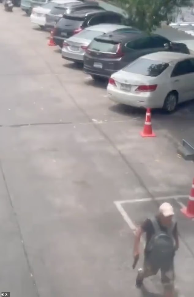 ဖြစ်စဉ်နေရာမှ ရိုက်ကူးထားသော ထိတ်လန့်ဖွယ် ဗီဒီယိုဖိုင်တွင် နွိုင်သည် အနက်ရောင် တီရှပ်နှင့် ခရင်မ်ရောင် ဘောင်းဘီတိုကို ဝတ်ဆင်ထားပြီး ကင်မိုဖလက်ခ် ပုံစံကျောပိုးအိတ်ကို ရှေ့တွင် လွယ်ထားသည်ကို တွေ့ရသည်။ ညာလက်တွင် သေနတ်ကို ကိုင်ဆောင်ထားသော ထိုအမျိုးသားသည် လူစည်ကားသော ဈေးသို့ လမ်းလျှောက်ဝင်ရောက်လာသည်ကို တွေ့ရသည်။