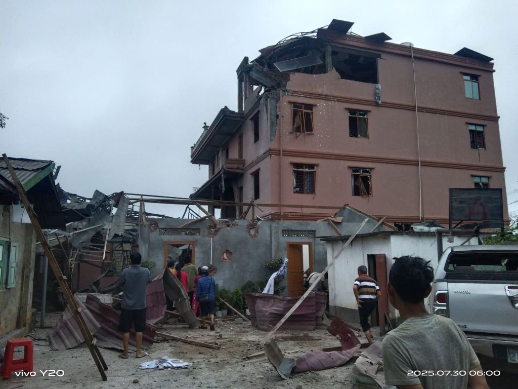 ကြဲချလိုက်တဲ့ဗုံးဟာ Hotel Yar Su Thit အပေါ် တည့်တည့်ကျခဲ့တာကြောင့် ဟိုတယ်အပေါ်ဆုံးထပ်နဲ့ သုံးလွှာမှာ ကြီးကြီးမားမားထိခိုက်ပျက်စီးခဲ့သလို ဟိုတယ်ဘေးက နေအိမ်တချို့မှာလည်း ပျက်စီးထိခိုက်ခဲ့တာရှိတယ်လို့ ဒေသခံတွေက ပြောပါတယ်။