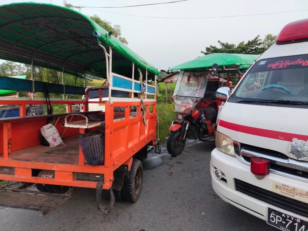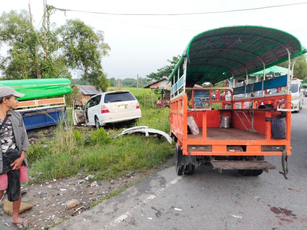 ရဟန်းတစ်ပါးမောင်းနှင်လာတဲ့ကားက ကုန်တင်ကားကိုကျော်တက်ရာကနေ အရှိန်လွန်ပြီး တစ်ဖက်ယာဉ်ကြောမှာ ရပ်တန့်ကာ ခရီးသည်စောင့်ဆိုင်းနေတဲ့ သုံးဘီးယာဉ်နှစ်စီးကို တိုက်မိတာကြောင့် လူ ၁ ဦးသေဆုံးကာ ၁၅ ဦးဒဏ်ရာရရှိမှု ဒီနေ့ ဇူလိုင် ၃၁ ရက် မနက် ၇ နာရီဝန်းကျင်က ကျိုက်လတ်-မအူပင် ကားလမ်းမပေါ်မှာ ဖြစ်ပွားခဲ့တယ်လို့ ဒေသခံလူမှုကူညီရေး အသင်းထံကနေ သိရပါတယ်။