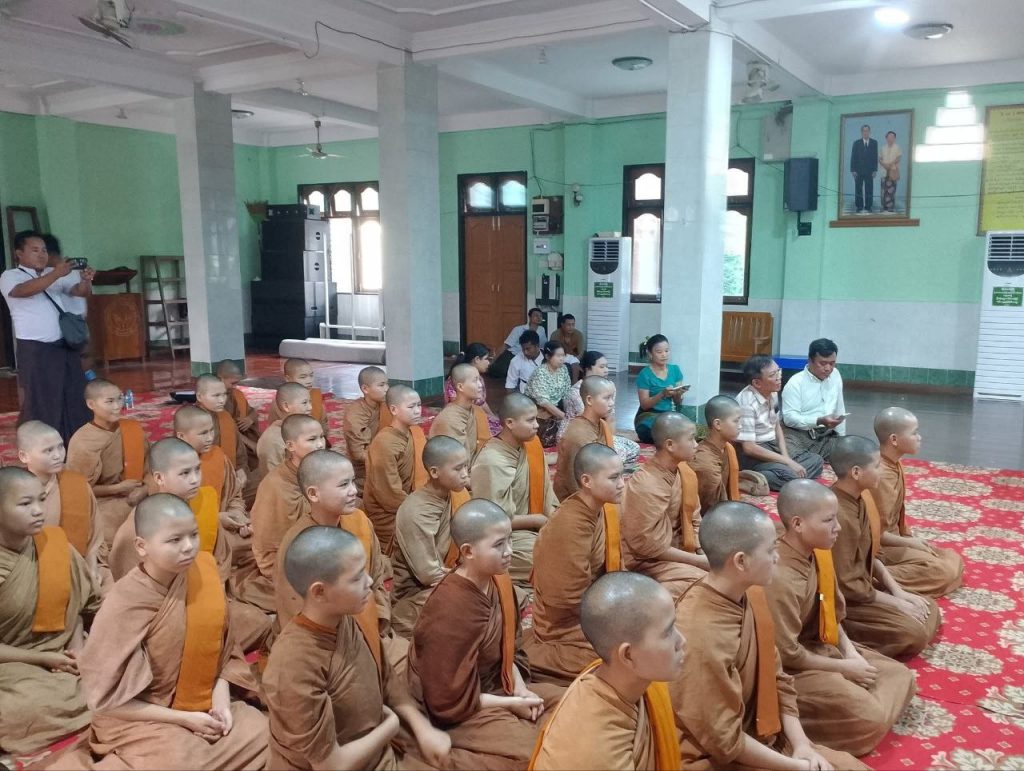 ပုံစာ။ ရခိုင်ပြည်နယ်၊ ဂွမြို့နယ်၊ မဟာဝိဟာရတောရကျောင်းမှ ဦးကဝိဓဇဦးဆောင်သော အဖွဲ့ပုံရိပ် (ဓာတ်ပုံ – မစိုးရိမ် ဖေးမလက်တွဲ)