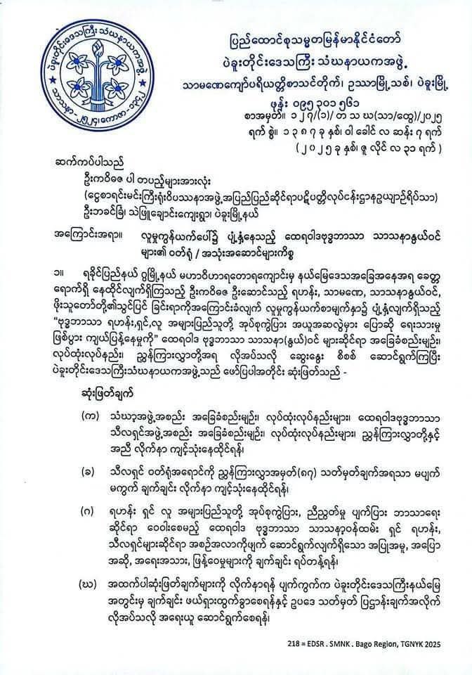 လူမှုကွန်ရက်ပေါ် ပျံ့နှံ့နေသည့် သီလရှင်များကသတ်မှတ်ဝတ်စုံမဟုတ်ဘဲ ဖန်ရည်စွန်းဝတ်ရုံအရောင်ကွဲ ဝတ်ရုံထားကာ သပိတ်များဆောင်ကာ သီတင်းသုံးနေထိုင်နေခြင်းကိစ္စအား ပဲခူးတိုင်းသံဃနာယကအဖွဲ့က ခေါ်ယူတွေ့ဆုံပြီး သီလရှင်ဝတ်ရုံအရောင်ကို ညွှန်ကြားချက်အတိုင်း လိုက်နာဝတ်ဆင်ရန်၊ မလိုက်နာပါက ပဲခူးတိုင်းမှထွက်ခွာရန်နှင့် အရေးယူမည်ဟု ဆုံးဖြတ်လိုက်ကြောင်း သိရသည်။