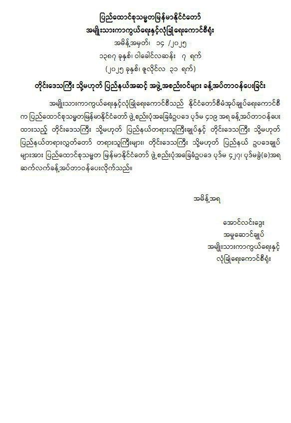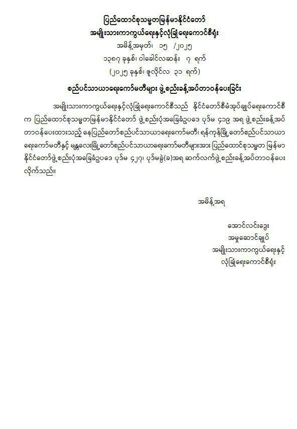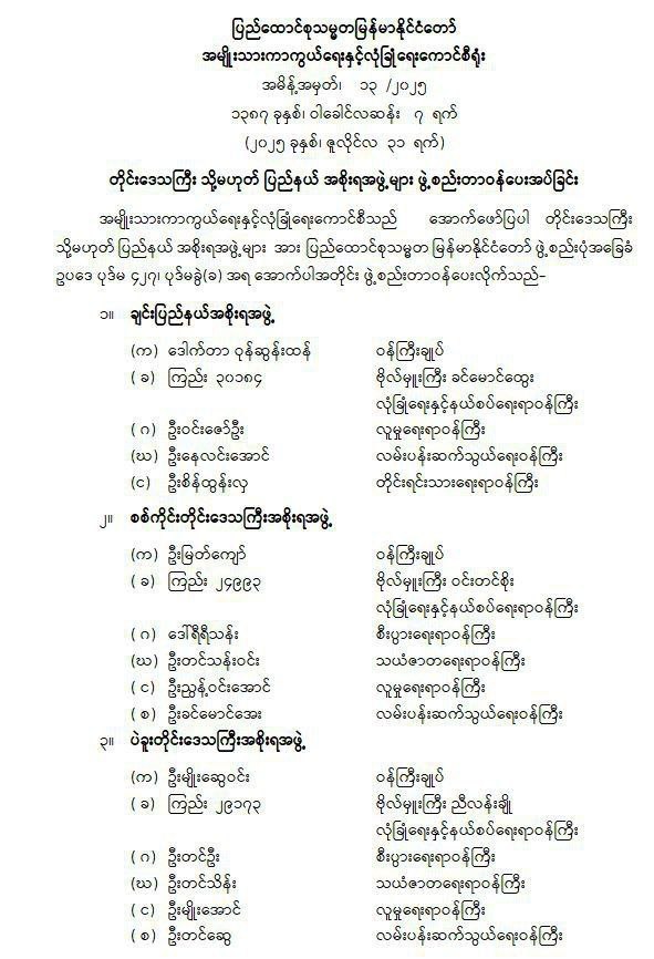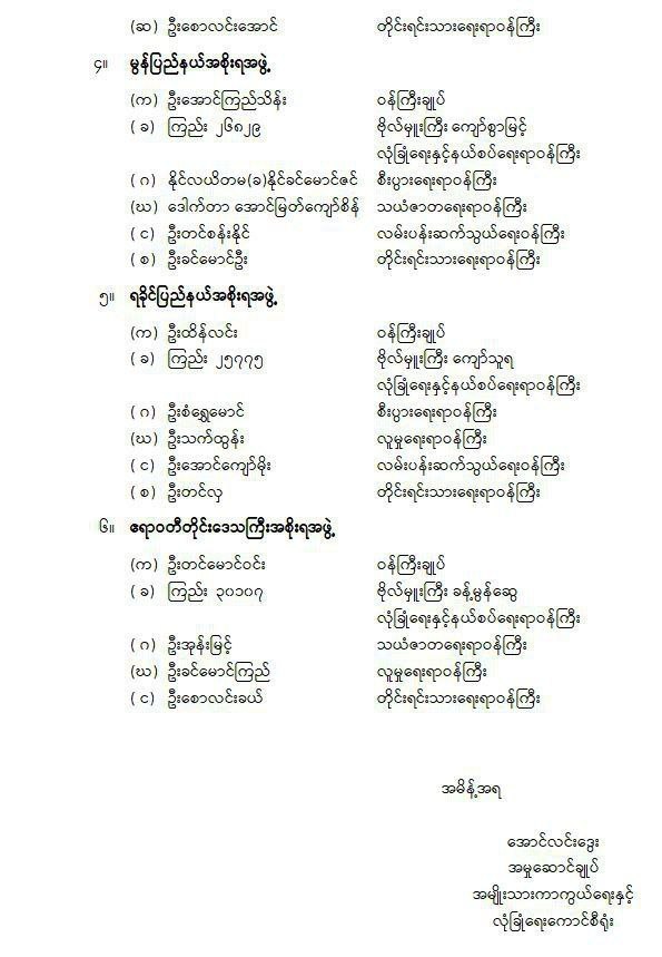 ◾️တိုင်းဒေသကြီး သို့မဟုတ် ပြည်နယ် တရားသူကြီးချုပ်၊ တရားလွှတ်တော်တရားသူကြီးများ၊ ဥပဒေချုပ်များကိုလည်း ဆက်လက်ခန့်အပ်တာဝန်ပေး