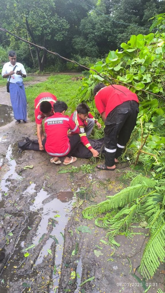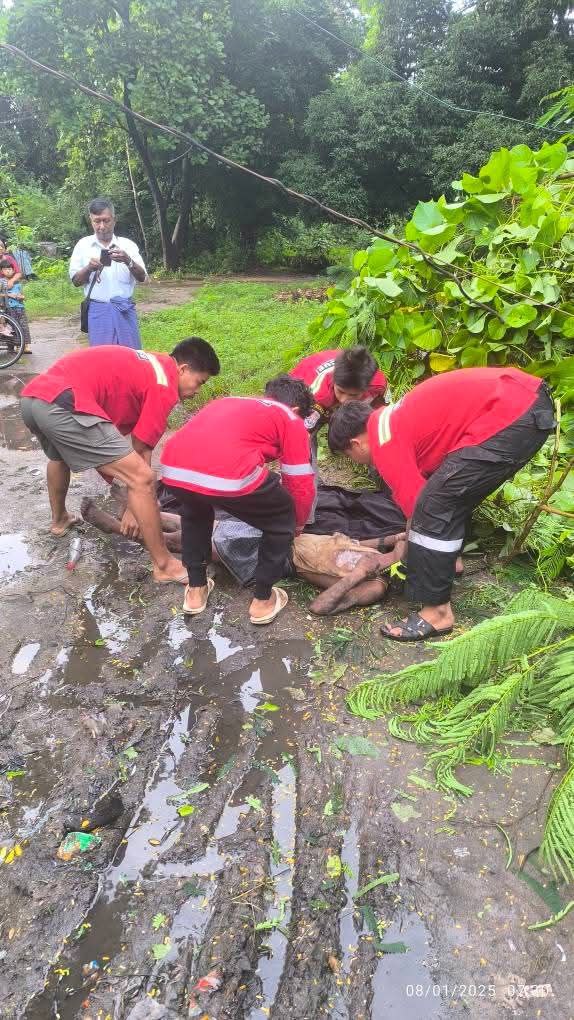 သစ်ပင်အို ရုတ်တရက်လဲပြိုကျရာက လျှပ်စစ်ဓာတ်ကြိုးကိုငြိပြီး အနီးက ဖြတ်သွားတဲ့ လမ်းသွားလမ်းလာအမျိုးသားတစ်ဦးရဲ့ လည်ပင်းကို ဓာတ်ကြိုးပတ်မိလို့ ဓာတ်လိုက်သေဆုံးရတဲ့ဖြစ်စဉ် ဒီနေ့ ဩဂုတ် ၁ ရက် မနက် ၆ နာရီဝန်းကျင်က တောင်ငူမြို့မှာ ဖြစ်ပွားခဲ့တယ်လို့ မြေပြင်အကူအညီရောက်ရှိခဲ့တဲ့ ရွေမင်းဝင်လူမှုကူညီရေးအသင်းထံကနေ သိရပါတယ်။