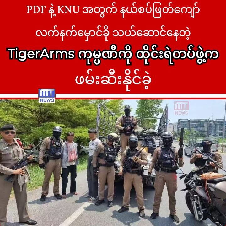 PDF နဲ့ KNU အတွက် နယ်စပ်ဖြတ်ကျော် လက်နက်မှောင်ခို သယ်ဆောင်နေတဲ့ “TigerArms”ကုမ္ပဏီကို ထိုင်းရဲတပ်ဖွဲ့က ဖမ်းဆီးနိုင်ခဲ့တယ်လို့ သိရပြီး ဒီလက်နက်တွေကို ချင်းမိုင်ခရိုင်၊ မဲ့တဲန်နယ်စပ်၊ မဲ့ဟောင်ဆောင်နယ်စပ်နဲ့ တာ့ခ်ခရိုင်၊ မဲဆောက် နယ်စပ်ကနေ မြန်မာနိုင်ကို သယ်ဆောင်ခဲ့တာဖြစ်ပါတယ်လို့ ထိုင်းရဲတပ်ဖွဲ့ကိုကိုးကားပြီး မန်နေဂျာအွန်လိုင်း ထိုင်းသတင်းဌာနက ရေးသားဖော်ပြထားပါတယ်။