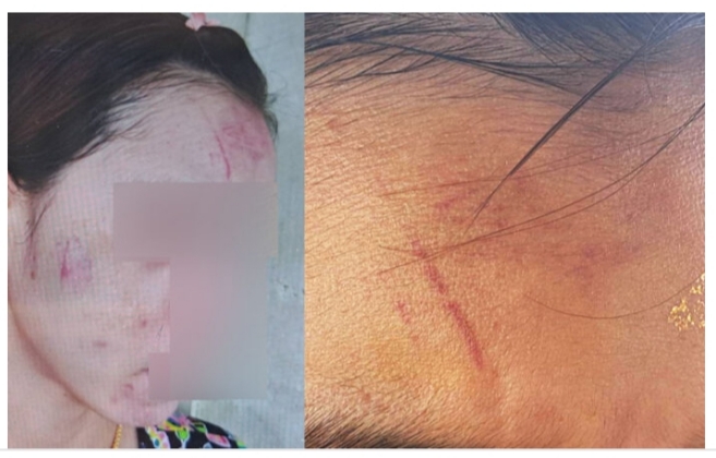 ရဲစခန်းတွင် အမှုဖွင့်ပြီးနောက် မကြာသေးမီက မြန်မာအမျိုးသမီး၏ မျက်နှာတွင် ဒဏ်ရာများ ရှိနေဆဲကိုလည်း တွေ့ရှိရသည်။